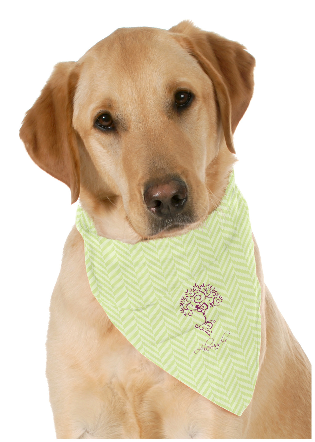 This beautiful pet bandana really is the perfect accessory. It is made from a silky feeling polyester and measures at approximately 23" x 23". Your personalization will be printed on a diagonal, so that you are able to read the personalization when folded into a triangle. This bandana fits best on large dogs, but can be folded smaller if there is no personalized text to fit smaller pets.