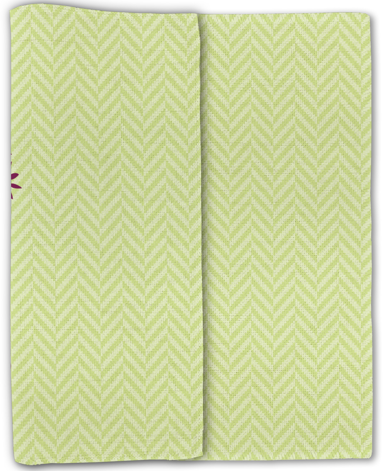 This design, set over a light lime-green chevron, is the epitome of elegance. A woman in a graceful yoga pose stands as still as a tree- in fact, she blends right into it.