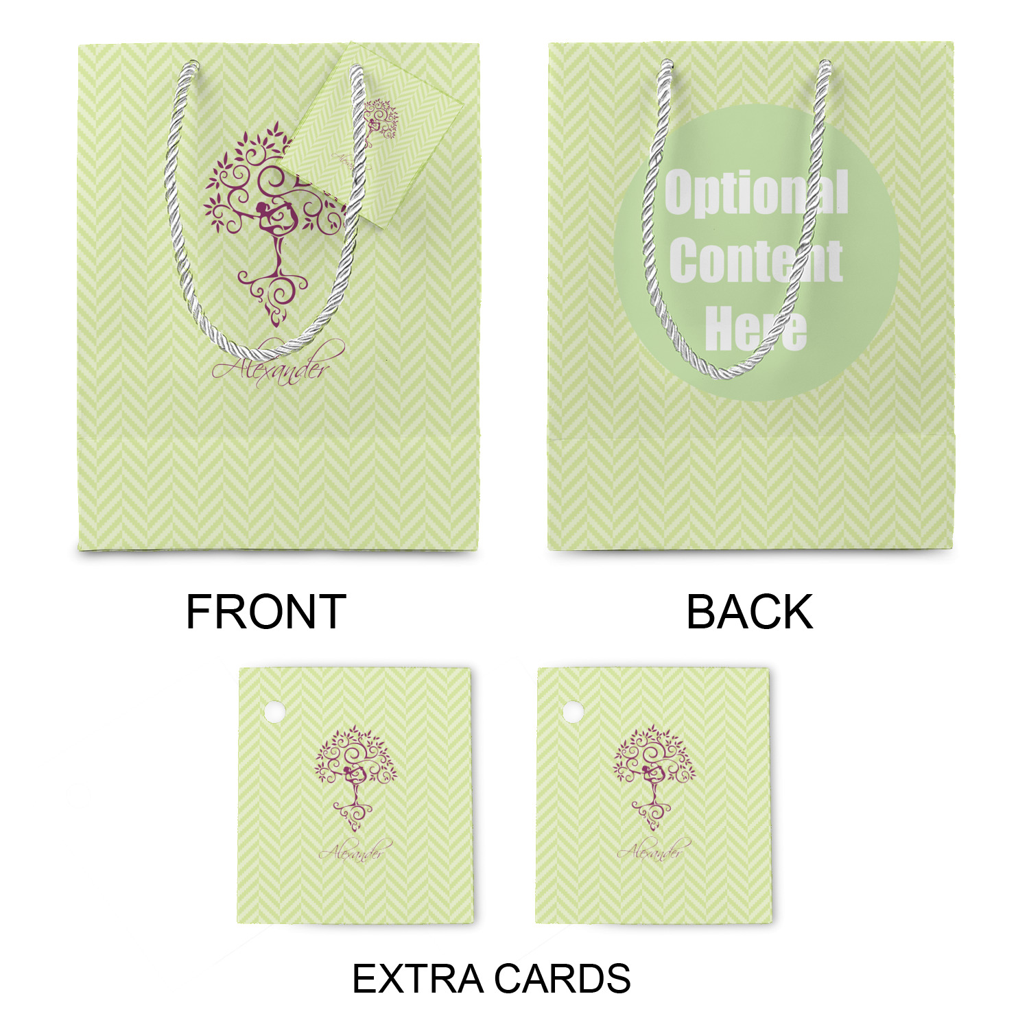 The bottom of the bag has a cardstock base to make the base more sturdy to hold up to all of your gifts. Each bag comes with one card on the rope handle and at least 1 extra card.