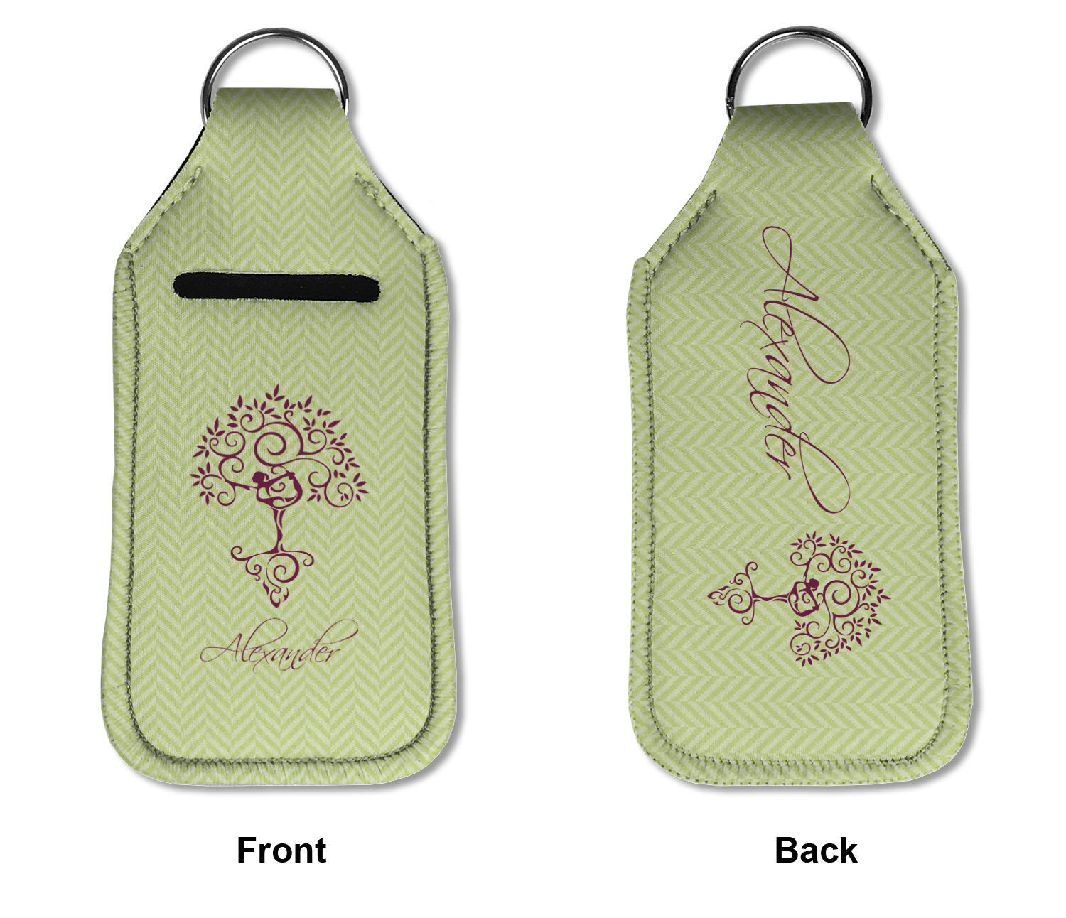 Each hand sanitizer holder comes with its own empty travel-sized, refillable hand sanitizer sure to fit snug in your customized sanitizer case! Our hand sanitizer cases are a durable, yet soft neoprene material sure to last any daily activities or travel agenda. Customize and personalize a hand sanitizer bottle holder with one of our two sizes - small (4.25" x 2.25") or large (5.5" x 2.5"). Each travel sanitizer holder comes with a keyring for attachment on bags, keys, or more!