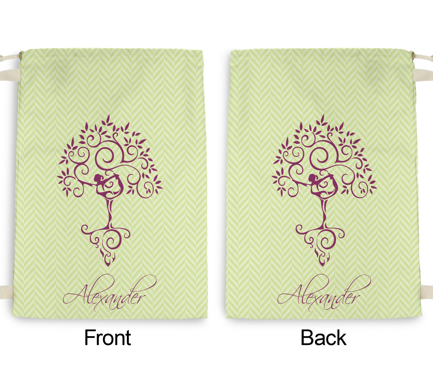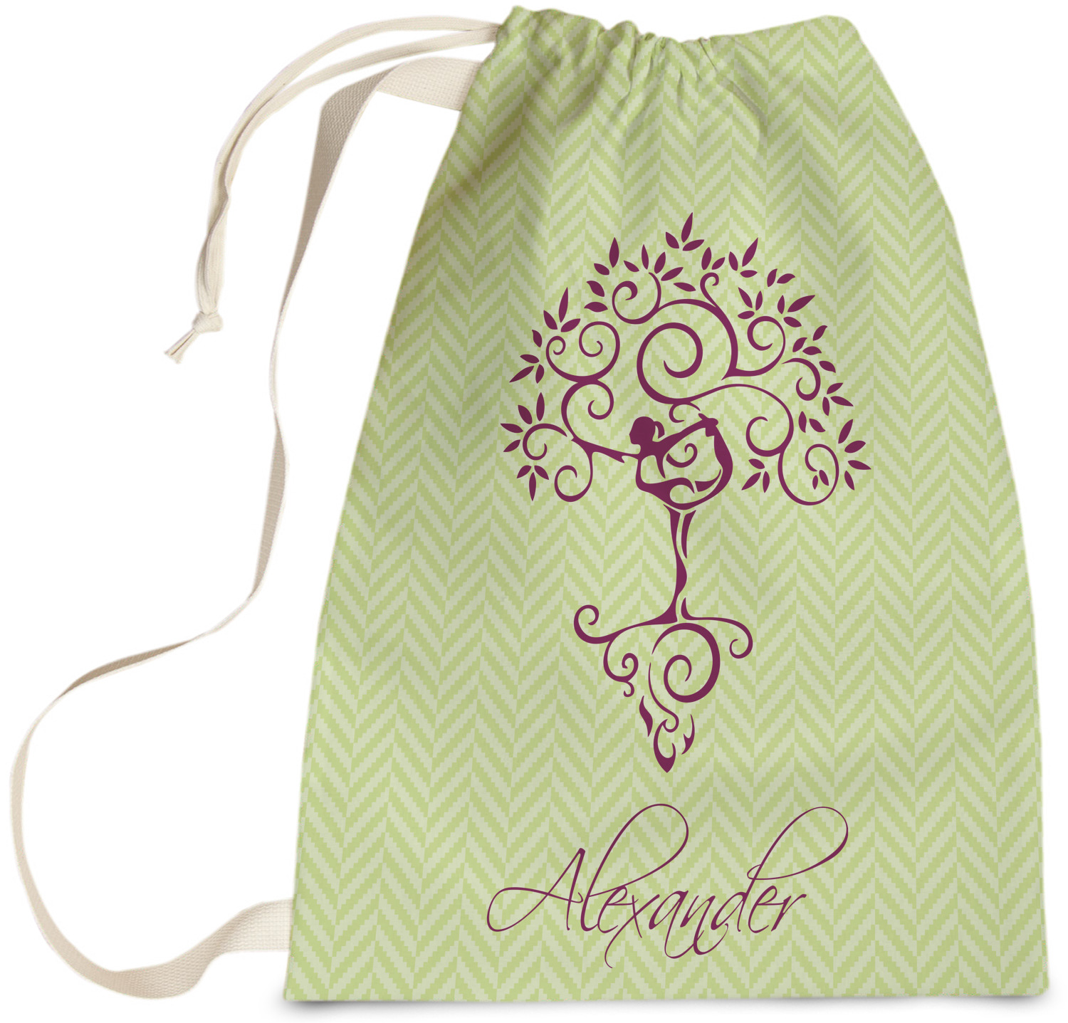 Carry your laundry in style with these customized laundry bags. Available in two sizes, featuring a natural colored woven strap and a cinch cord, these bags hold a lot of clothes or anything else you want to fit in them.