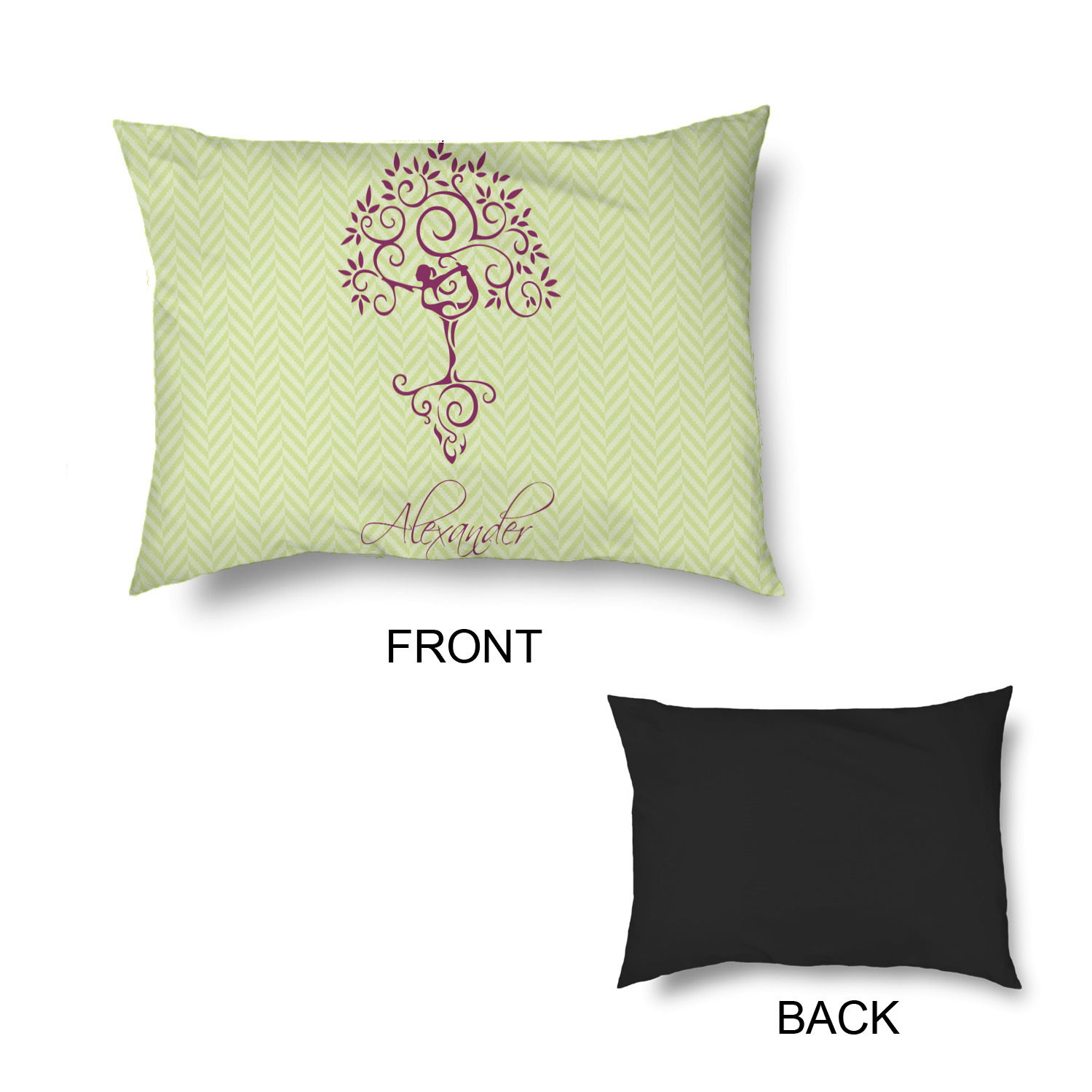 This design, set over a light lime-green chevron, is the epitome of elegance. A woman in a graceful yoga pose stands as still as a tree- in fact, she blends right into it.