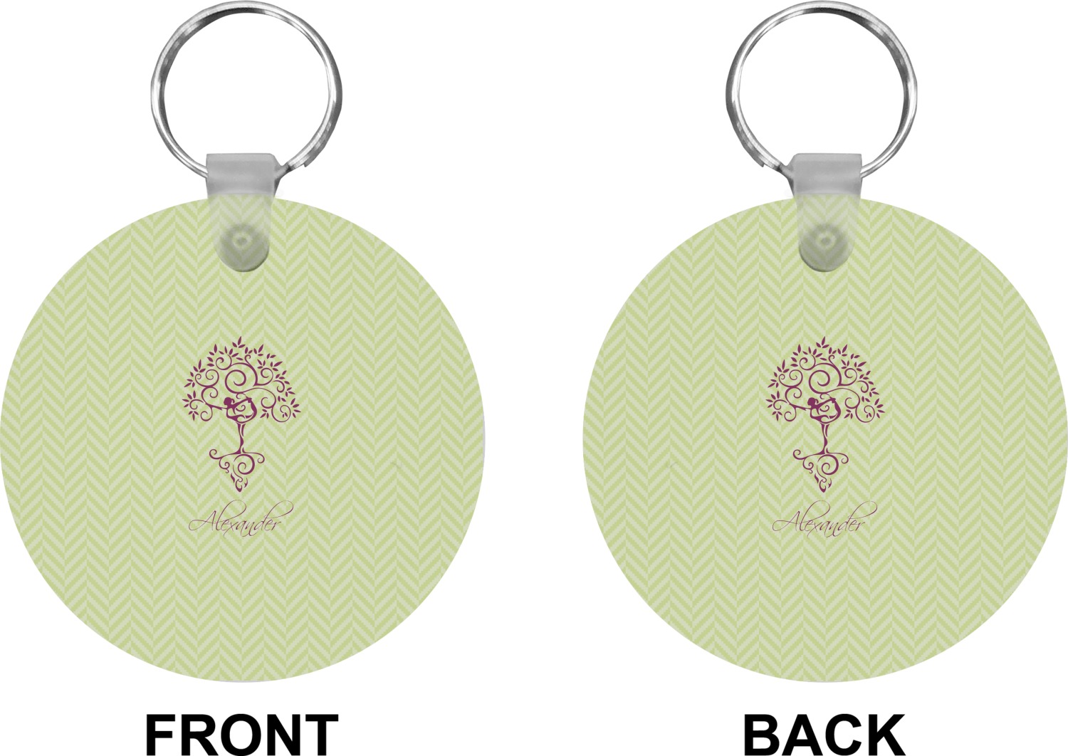 Our personalized keychains attach to the included metal, split key ring with a plastic, removable snap. Since a metal ring is included with your purchase, you have the liberty to keep your keys together on the ring, with or without your unique keychain. We offer this keychain in three different shapes: circle, heart, or diamond. We print your personalized design(s) on both sides of the key chain, and the surface has a glossy, reflective finish that only emphasizes your design. Each keychain is approximately 2.25 by 2.25 inches.
