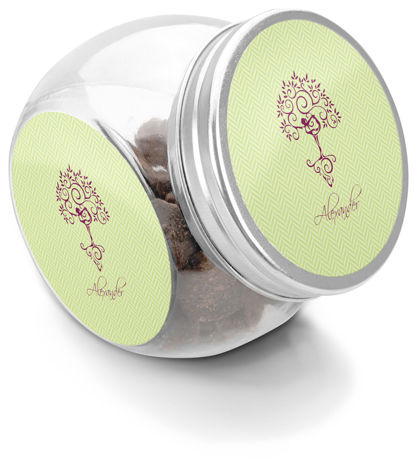 This treat jar is an excellent way to store treats for your favorite canine or feline. Moreover, their delicate, classy appearance makes them a tasteful addition to your countertop's décor. Crafted from clear glass, its unique construction and silver metal, screw-on lid allows for quick and easy access. Three, permanent, vinyl stickers are applied to both sides of the jar and lid, presenting your personalized design. The base of this glass, dog treat jar is 3.4" x 4.75", and the jar stands at 5" tall. Though on the smaller side, this jar is best suited for smaller treats or training treats.