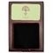 Crafted from a fine mahogany, this post it note holder is in the shade of a dark, cherry color. The dispenser itself is about 4.25 by 6.25 by 0.75 inches. You can place your 3 by 3 inch sticky notes in the indentation below the nameplate. We print your customization onto the nameplate that rests above the velvety indentation.