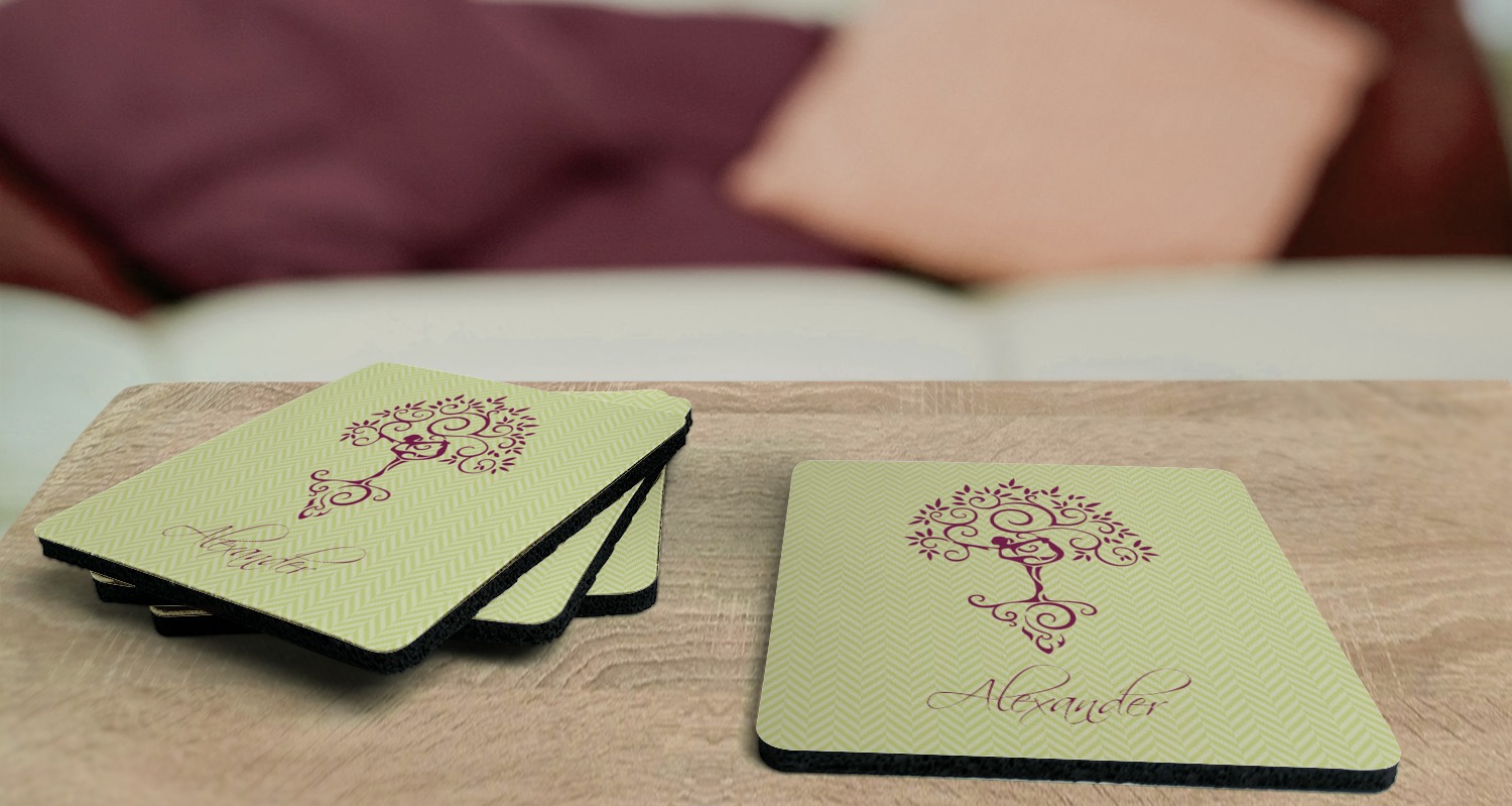 Replace your boring, run-of-the-mill coasters with a set of 4 personalized coasters! When personalized, these coasters will protect your beloved surfaces while adding to your home's decor! Thanks to your coasters bright colors and unique design, your guests will be eager to use them!