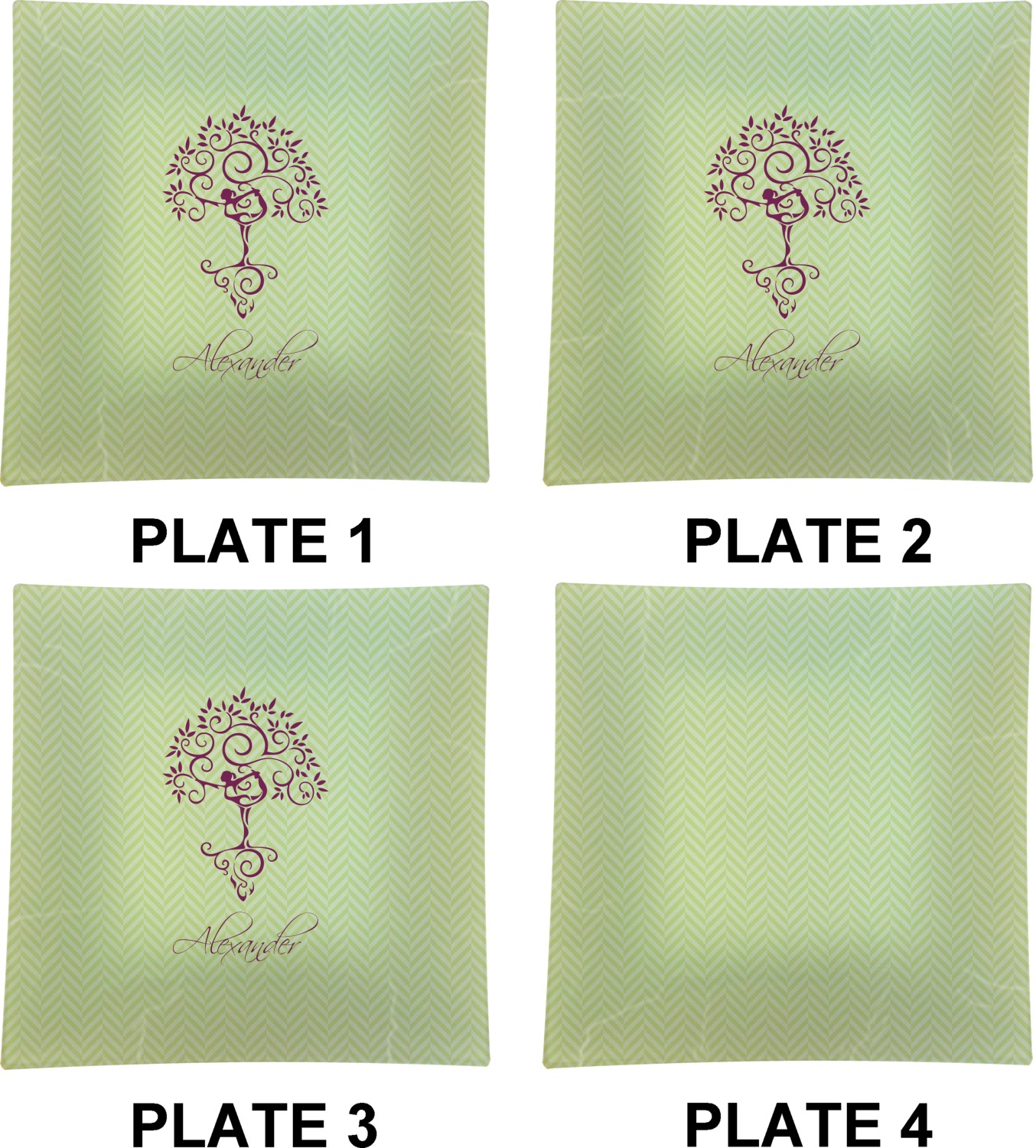 Tree Pose Designs for Glass Square Lunch / Dinner Plates 9.5" - Set of 4