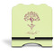 This design, set over a light lime-green chevron, is the epitome of elegance. A woman in a graceful yoga pose stands as still as a tree- in fact, she blends right into it.