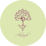 This design, set over a light lime-green chevron, is the epitome of elegance. A woman in a graceful yoga pose stands as still as a tree- in fact, she blends right into it.