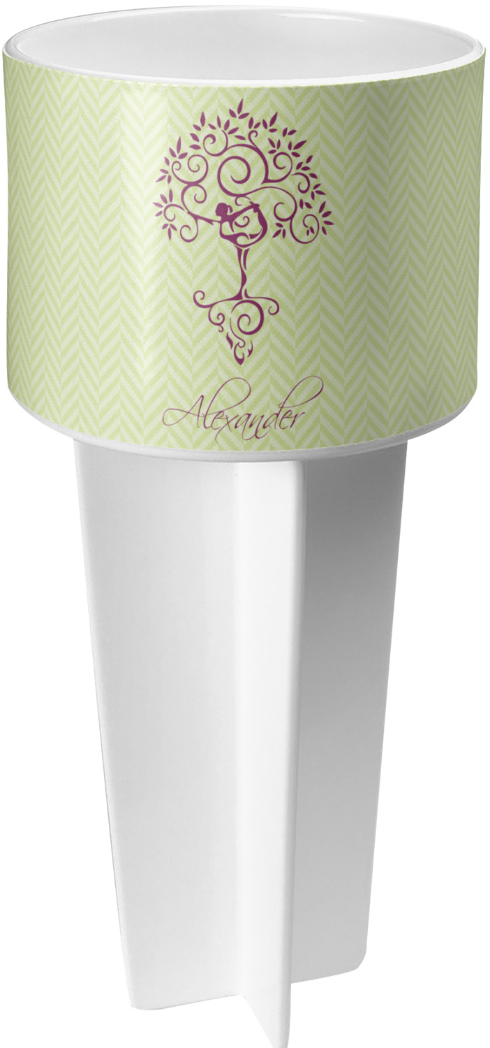 This cup holder has a large stake at its bottom that anchors it to the sand or ground below, while the cup holder rests above the stake. The entire drink holder is made of durable plastic and displays your customization around the cup holder portion. We sell these personalized beach spikers in two different colors: black and white.