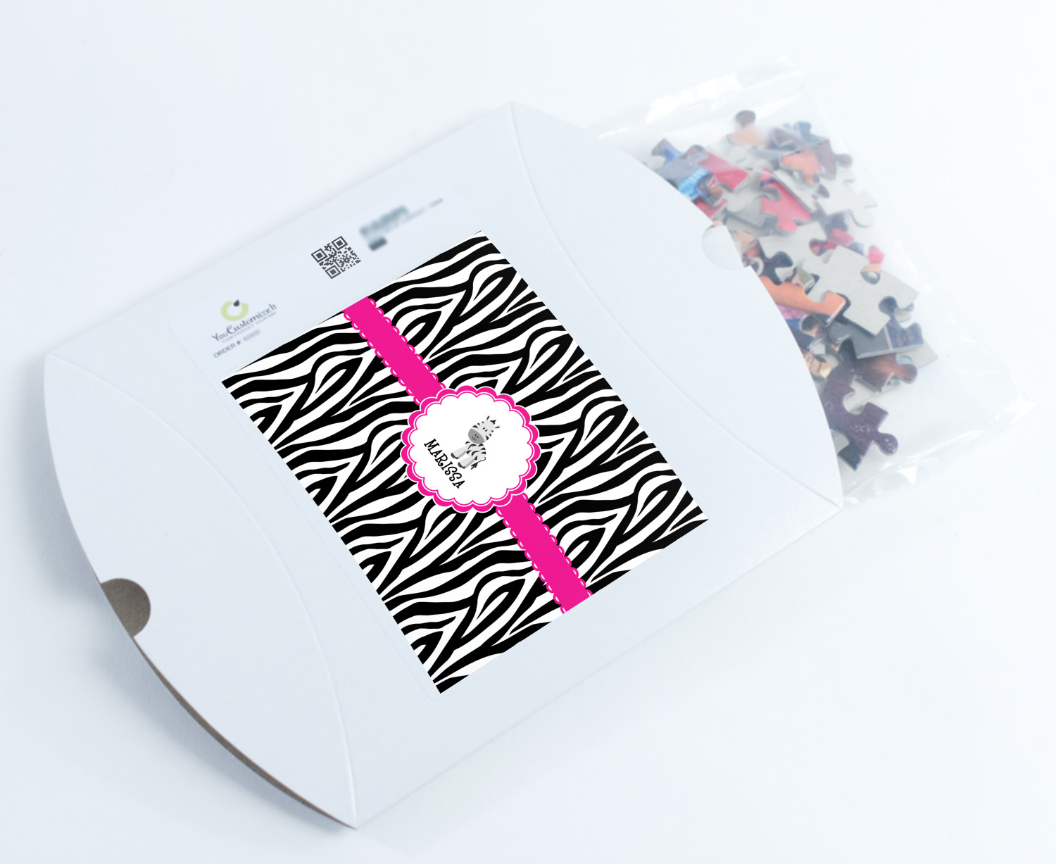 You can also upload your logo or art that you or your kids drew. To create more challenging jigsaw puzzles, you can create a pattern from with your logo or artwork. You can also add other elements such as text or personalization.
