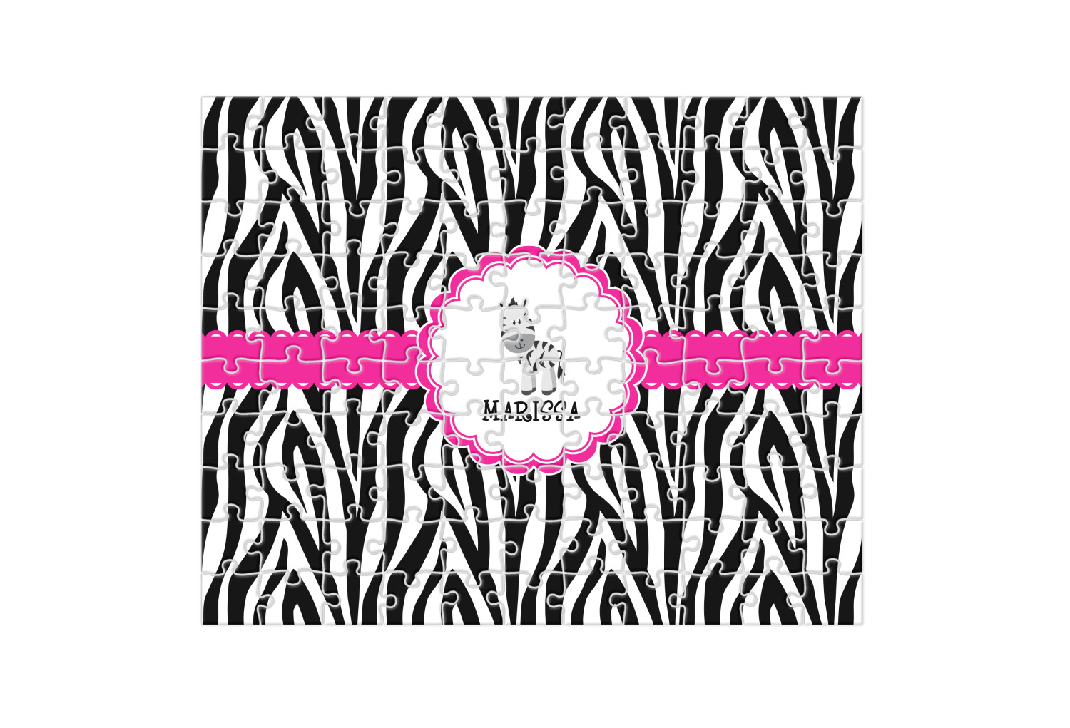 The quintessential animal print is zebra. Stylish and traditional this zebra pattern will withstand the test of time. A touch of whimsy is added to this design with a ruffled wide hot pink band.