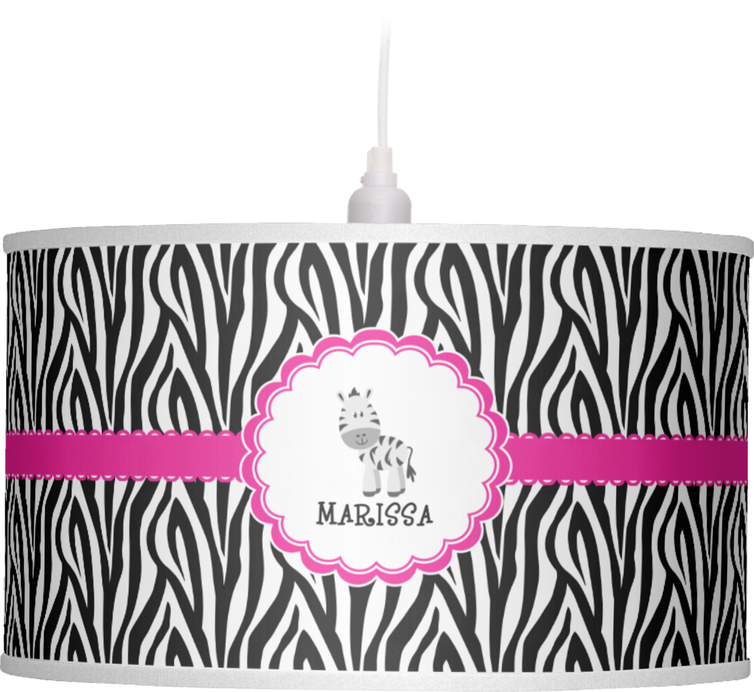 The quintessential animal print is zebra. Stylish and traditional this zebra pattern will withstand the test of time. A touch of whimsy is added to this design with a ruffled wide hot pink band.