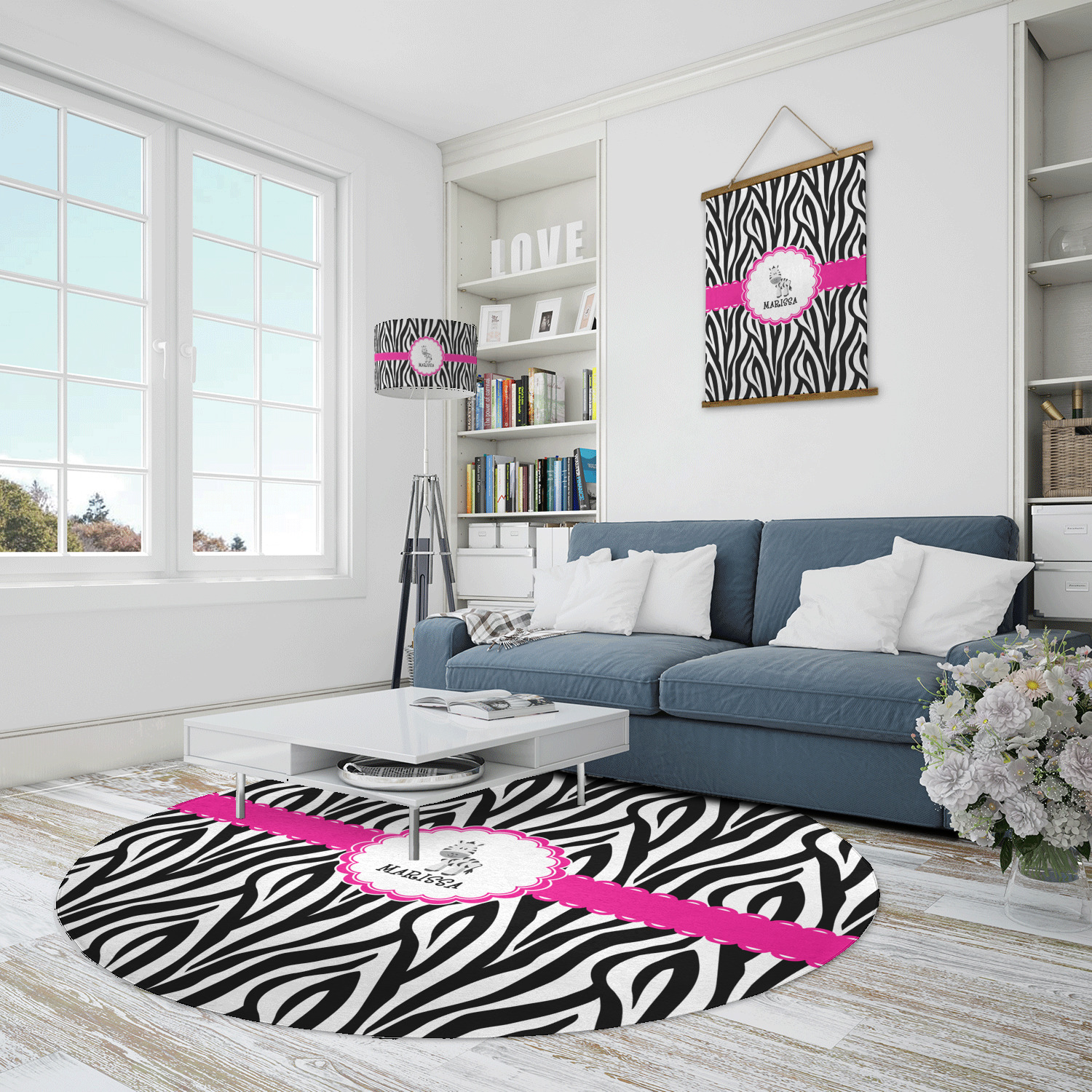 The quintessential animal print is zebra. Stylish and traditional this zebra pattern will withstand the test of time. A touch of whimsy is added to this design with a ruffled wide hot pink band.
