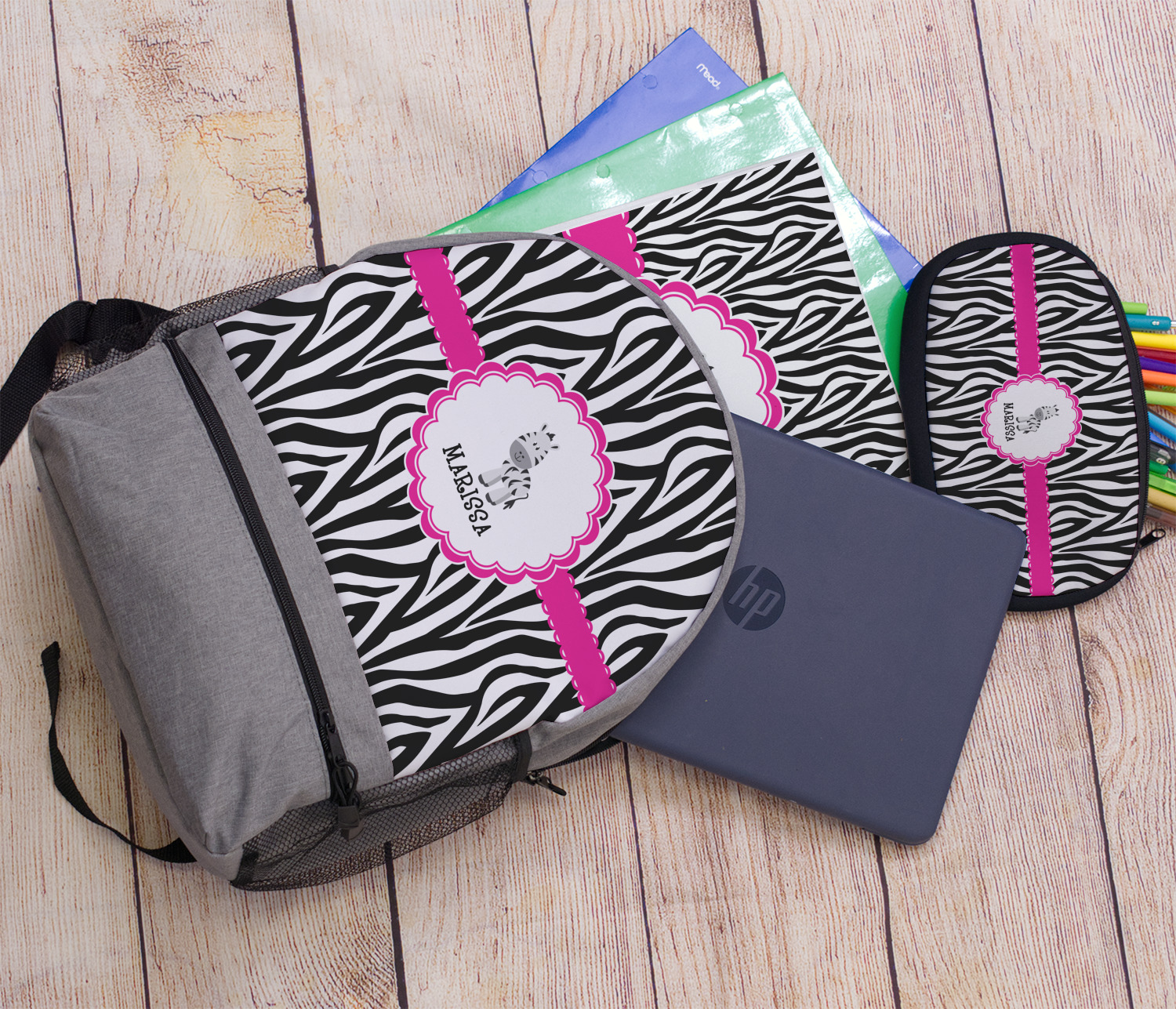 This cute band highlights a scalloped coordinating circle label featuring an adorable zebra. Underneath the zebra there is ample room for personalization of your choice.
