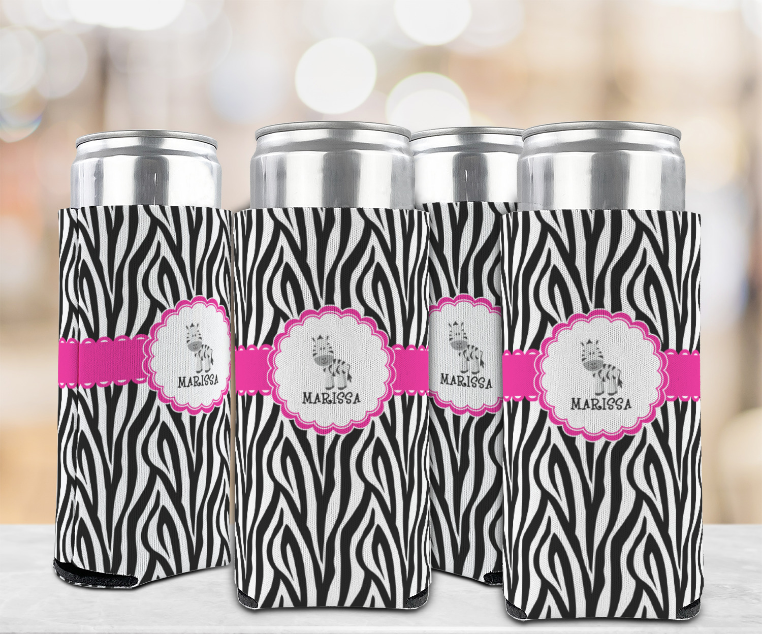 This cute band highlights a scalloped coordinating circle label featuring an adorable zebra. Underneath the zebra there is ample room for personalization of your choice.