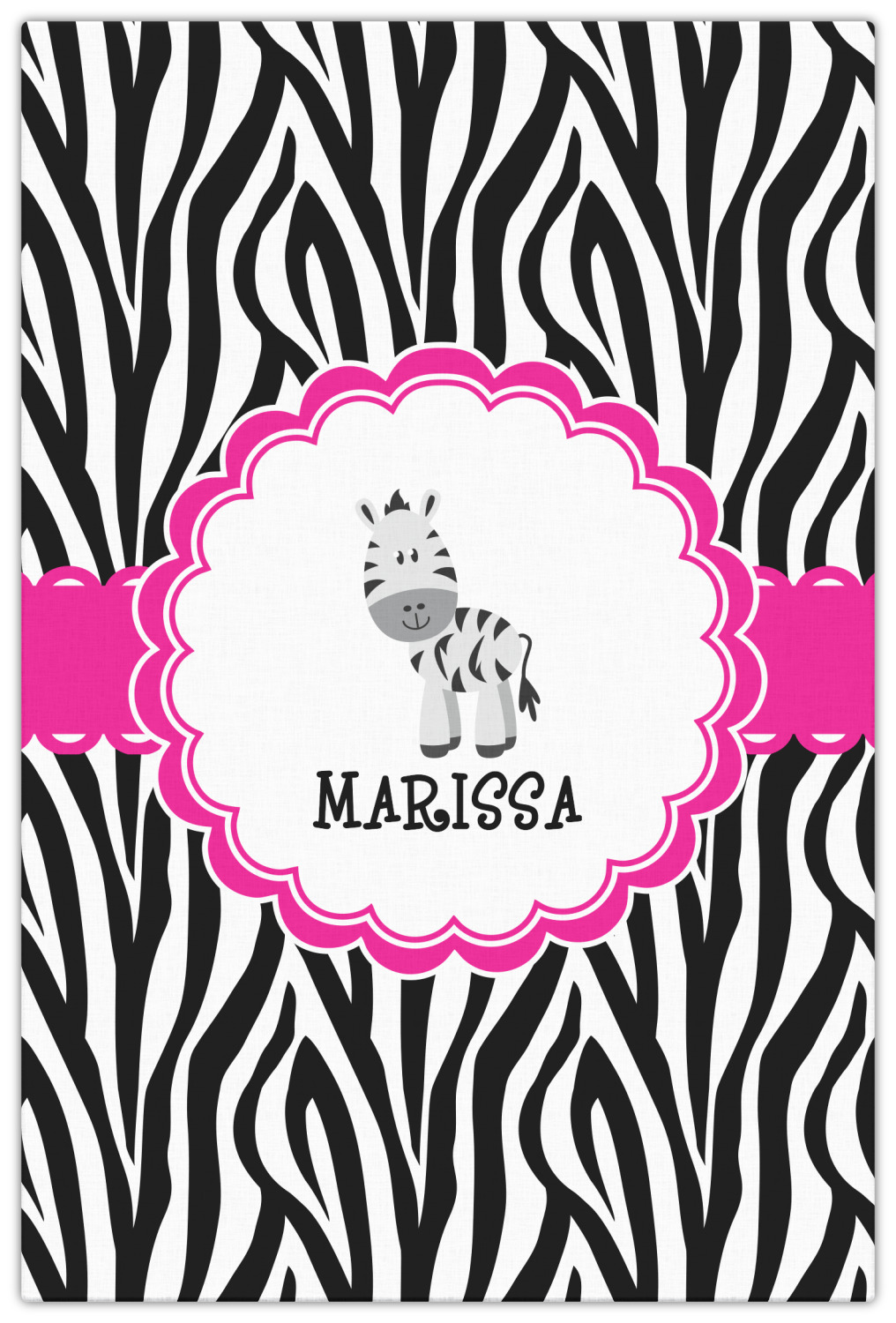 The quintessential animal print is zebra. Stylish and traditional this zebra pattern will withstand the test of time. A touch of whimsy is added to this design with a ruffled wide hot pink band.
