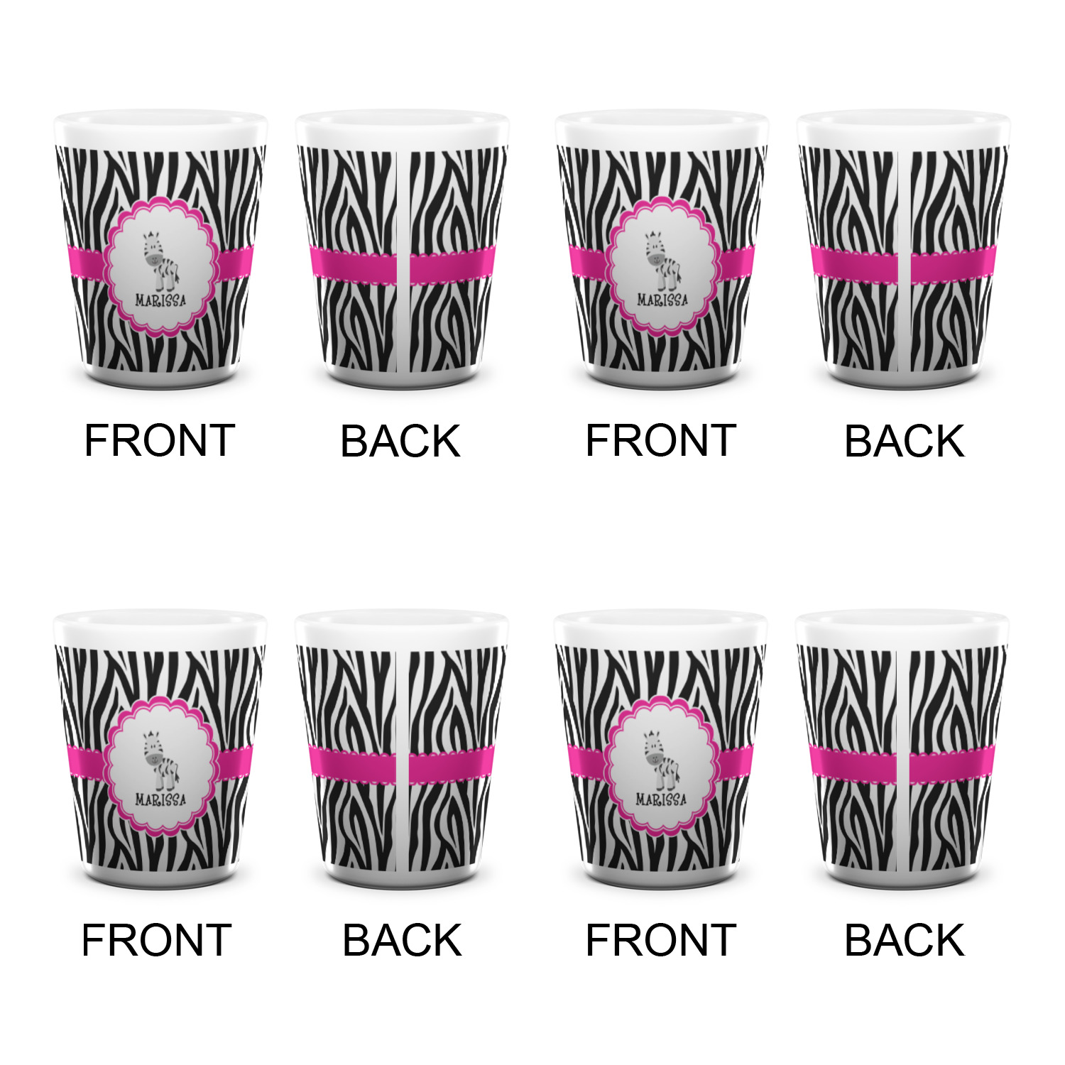 Made from ceramic these shot glasses are printed in full color with the design of your choice. These are a standard 1.5oz size and stand 2.25" tall. Available in a full white ceramic or a two-tone with a black color inside the shot glass. Buy a single or a set of 4, all of which can be designed separately to get you just what you want and need.