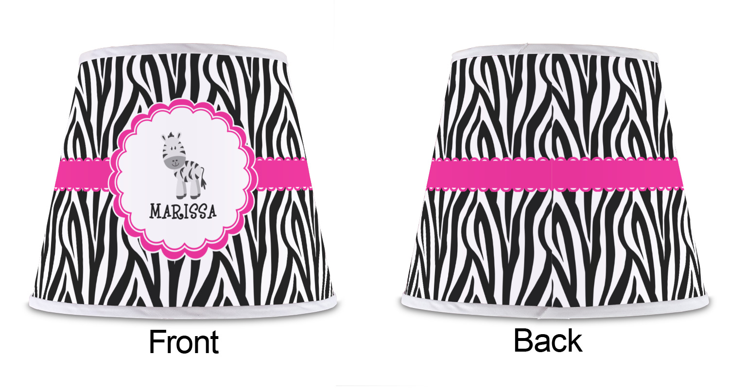 The base of this lampshade is 12 inches in diameter, and the top spans 8 inches in diameter. The total height of the lampshade is 10 inches. The angled nature of this custom lampshade concentrates the light, making it ideal for smaller spaces. This lampshade is made of matte, polyfilm, and displays your customization in its middle. The top and bottom of this colorful lamp shade are lined with a white fabric ribbon (which can be replaced with black inside the design studio) which frames your design and creates a sophisticated finish. As an UNO fitter lampshade, this unique lamp shade will fit a variety of bases.