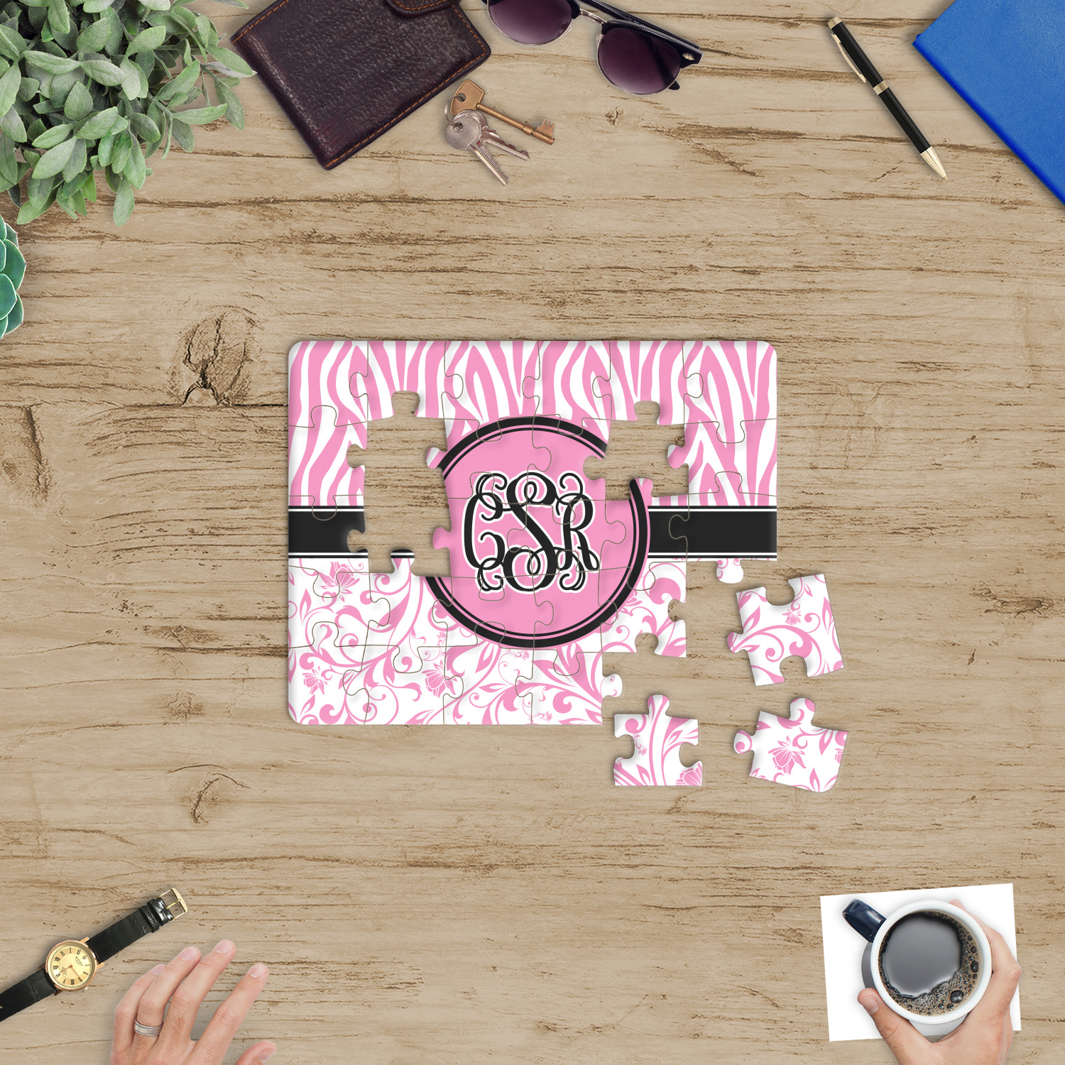 Depending on the look you are trying to achieve, you can add; a thematic pattern or background, with a photo in a frame and text or personalization to your puzzle. Basically if you can imagine it, you can design it!