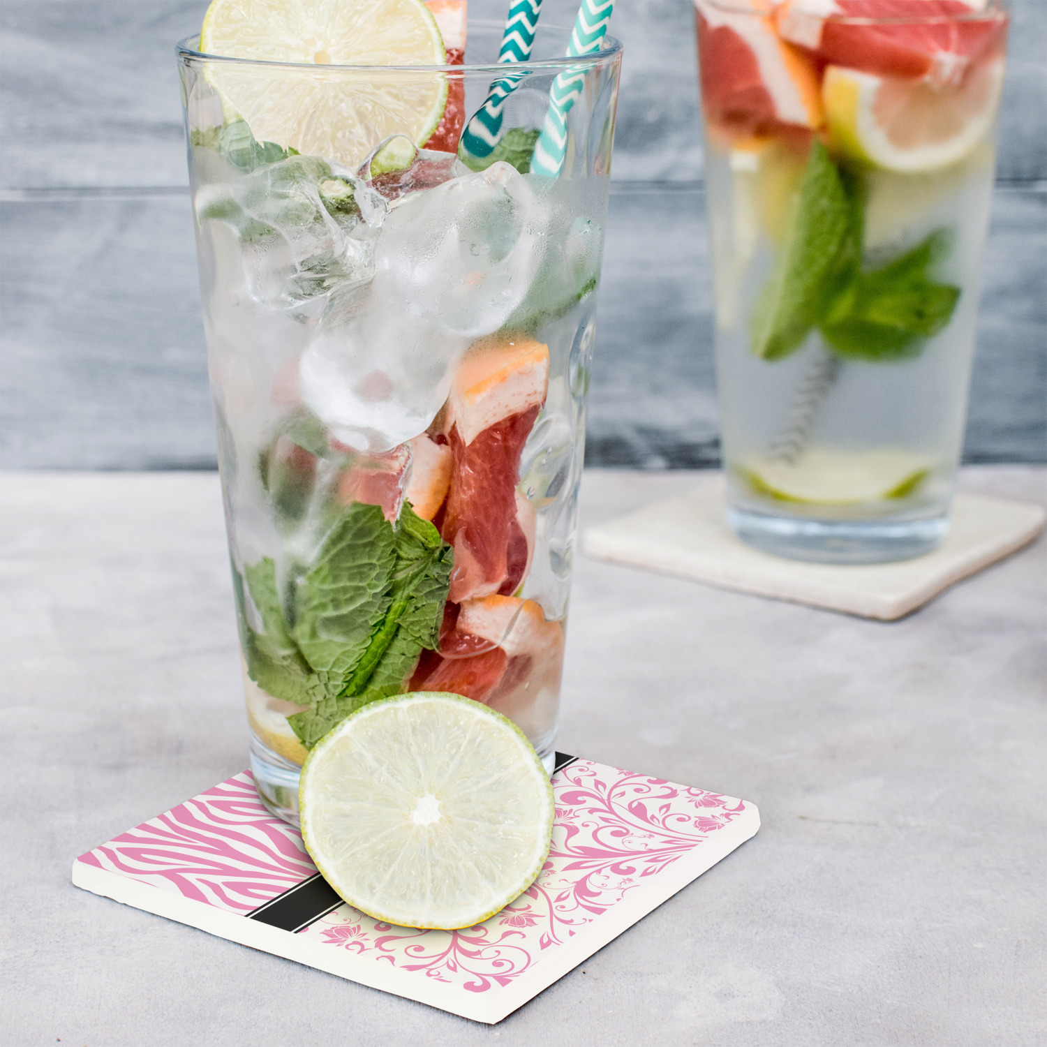 These customized stone coasters are perfect for use with beverages that are served in drinkware that "sweat". When cocktails, sodas, iced tea, water, etc. are served with ice in a regular glasses (non insulated glasses), they release condensation that drips down the outside of the glasses.