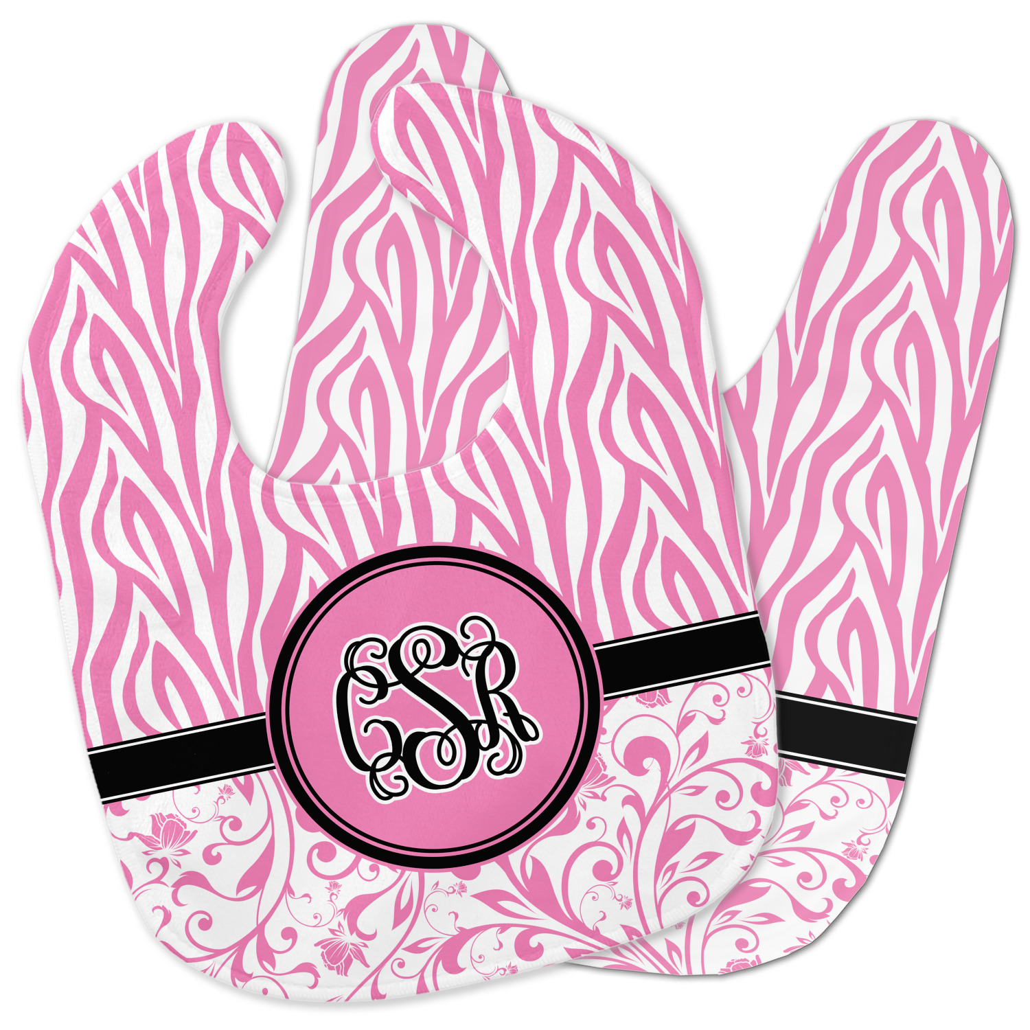 Made of soft polyester, each customizable bib hugs comfortably around the neck to catch every drip and drool. Each bib design is printed with baby-safe ink and finished with a secure stitch pattern and velcro clasp. We carry two customizable bib styles -Microfiber Velour and Jersey Knit.