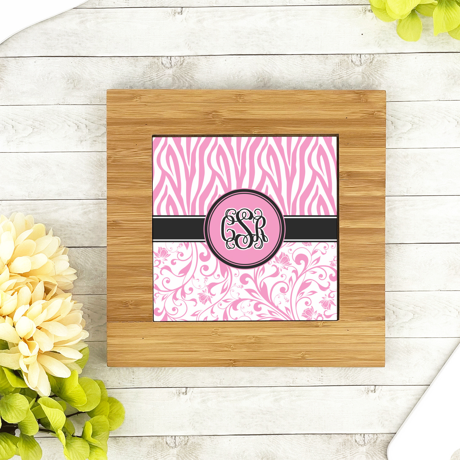 The center is highlighted by a 6in ceramic tile that is printed with the design of your choice. The tile sits slightly higher than the bamboo to ensure the majority of the heat stays on the tile not on the bamboo.