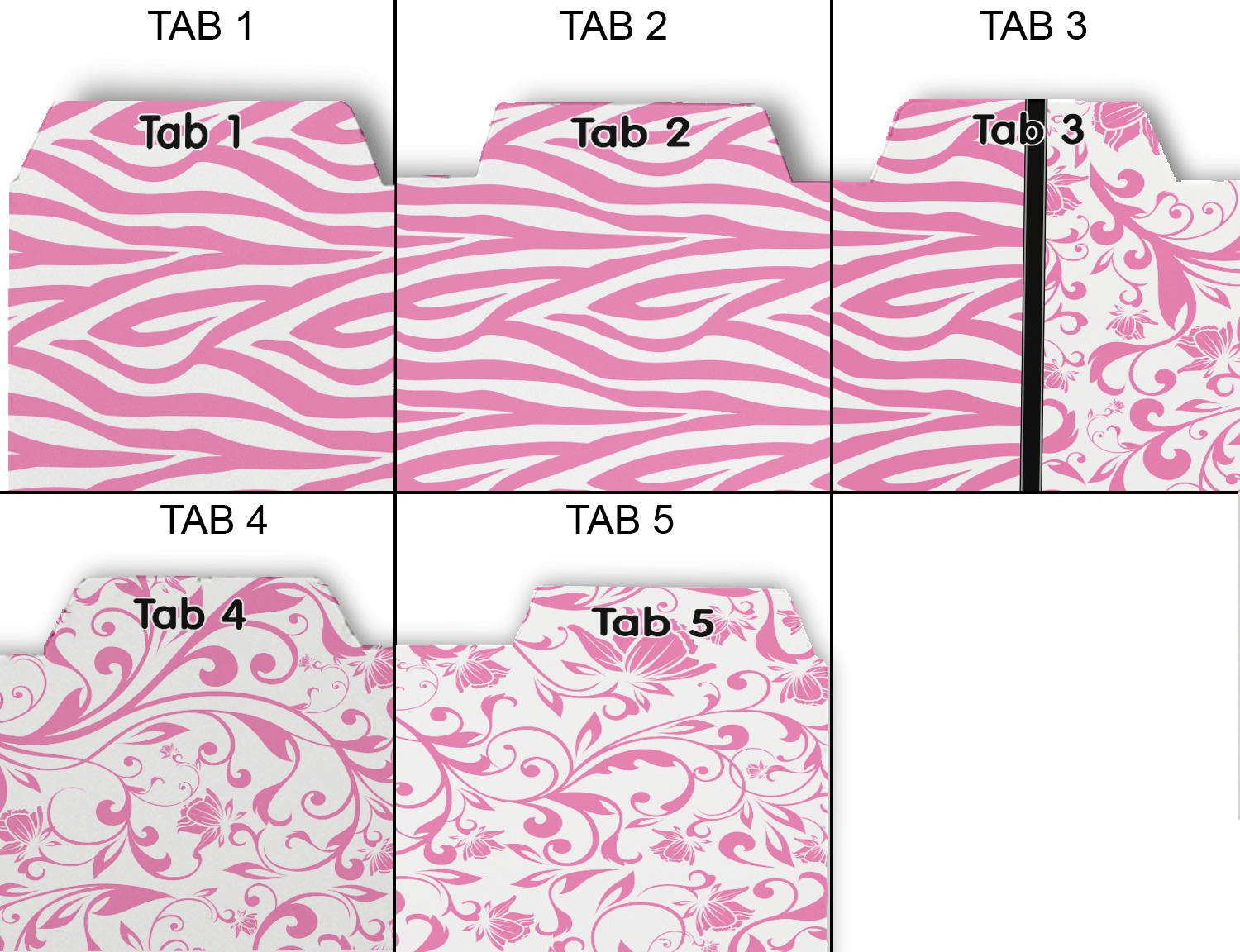 Whether you use binders at school or at work, we have designs to suit all of them. Available in 5 or 6 tab sets, you are sure to find a set to suit your needs. The back of each one is white and can be used to take notes, write vital information on, etc.