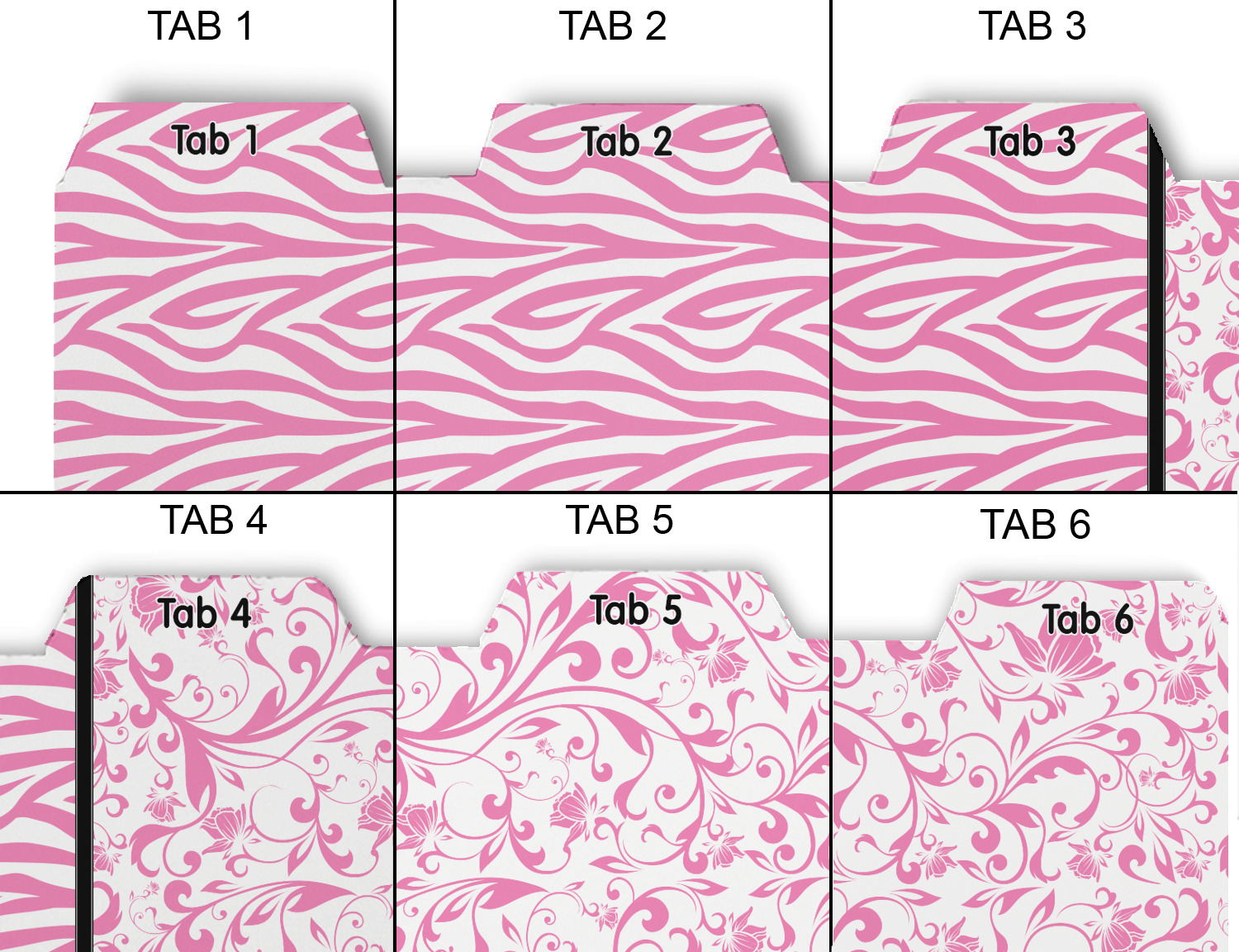 Whether you use binders at school or at work, we have designs to suit all of them. Available in 5 or 6 tab sets, you are sure to find a set to suit your needs. The back of each one is white and can be used to take notes, write vital information on, etc.