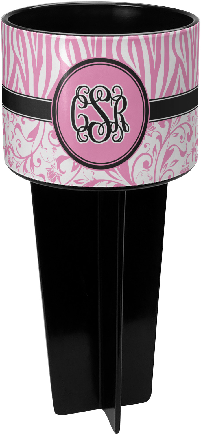 This cup holder has a large stake at its bottom that anchors it to the sand or ground below, while the cup holder rests above the stake. The entire drink holder is made of durable plastic and displays your customization around the cup holder portion. We sell these personalized beach spikers in two different colors: black and white.