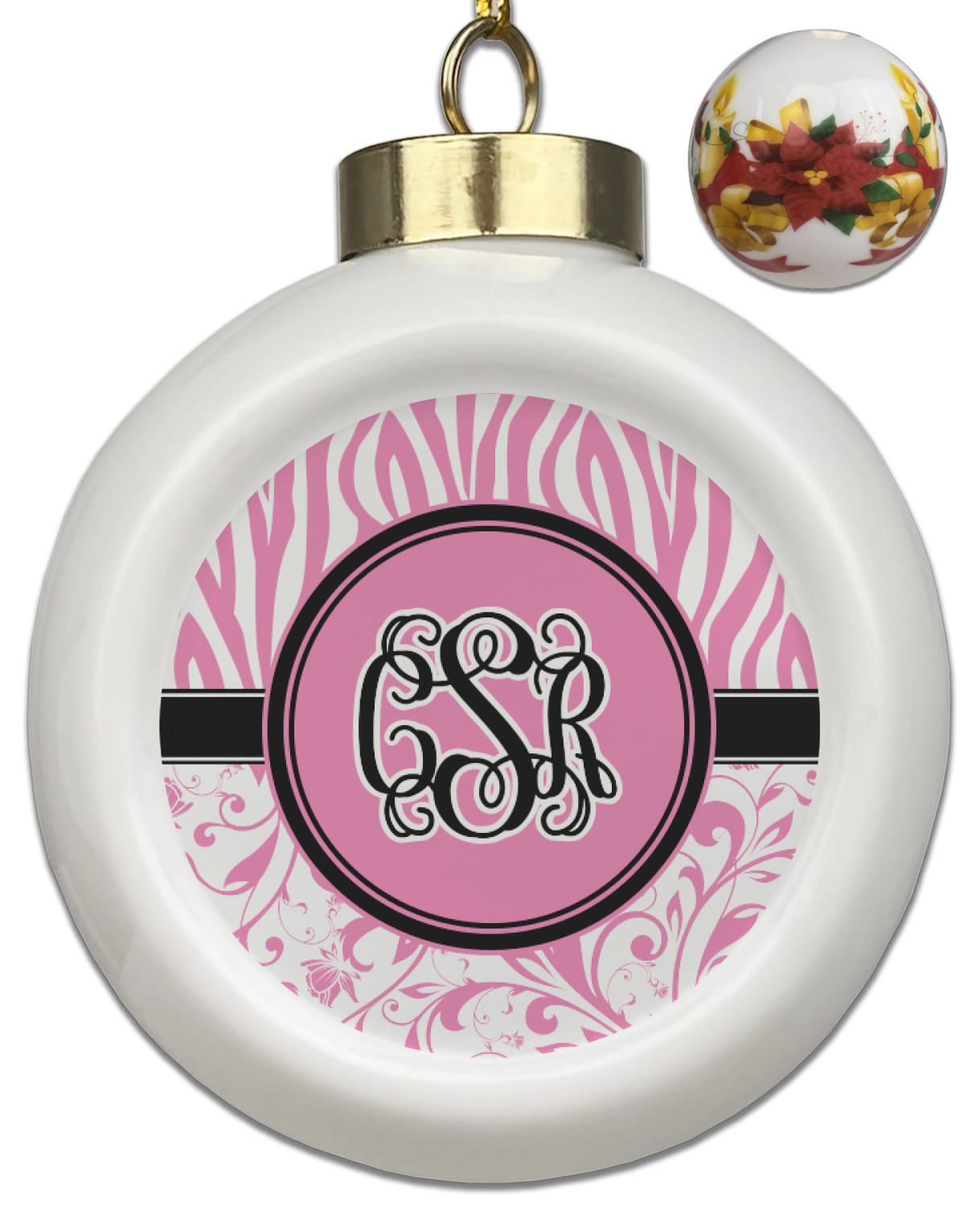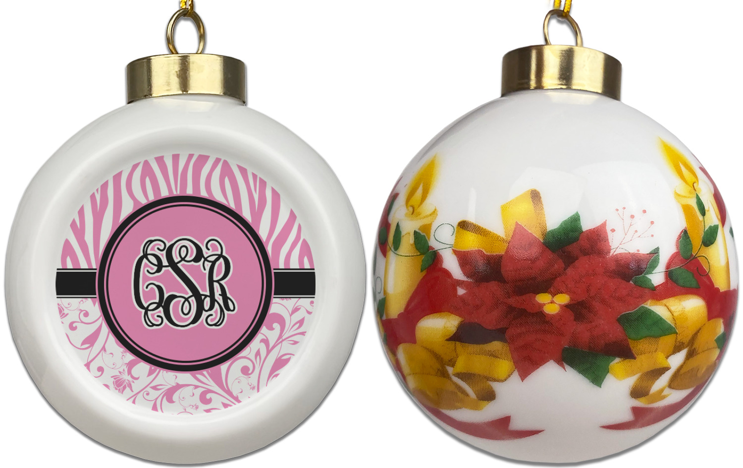 Our Christmas ornaments are a unique ceramic ball shape with a twist as it has a flat face to display your custom design! Select from one of our two design types - Christmas Tree or Poinsettia Garland - to adorn the curved back of your personal design. Each ornament measures 3H x 2.5W x 2D accompanied with a gold string accent for finishing touches to hang on your beautiful Christmas tree!