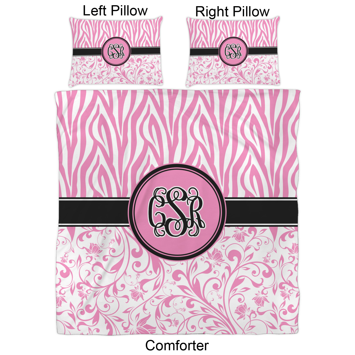 We have hundreds of different design templates for you to choose from Each design can be customized to your exact specifications. Not only can you customize the comforter, but you can also customize each pillow sham e.g. for a queen comforter set you have have Mr & Mrs pillow shams with the last name on comforter.