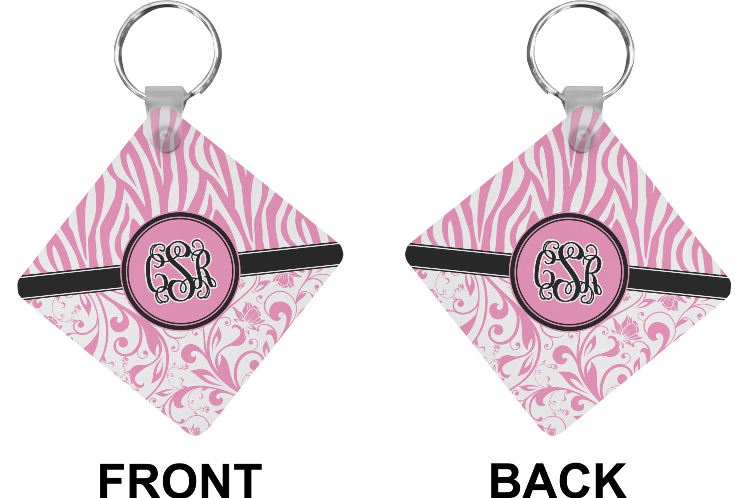 Our personalized keychains attach to the included metal, split key ring with a plastic, removable snap. Since a metal ring is included with your purchase, you have the liberty to keep your keys together on the ring, with or without your unique keychain. We offer this keychain in three different shapes: circle, heart, or diamond. We print your personalized design(s) on both sides of the key chain, and the surface has a glossy, reflective finish that only emphasizes your design. Each keychain is approximately 2.25 by 2.25 inches.