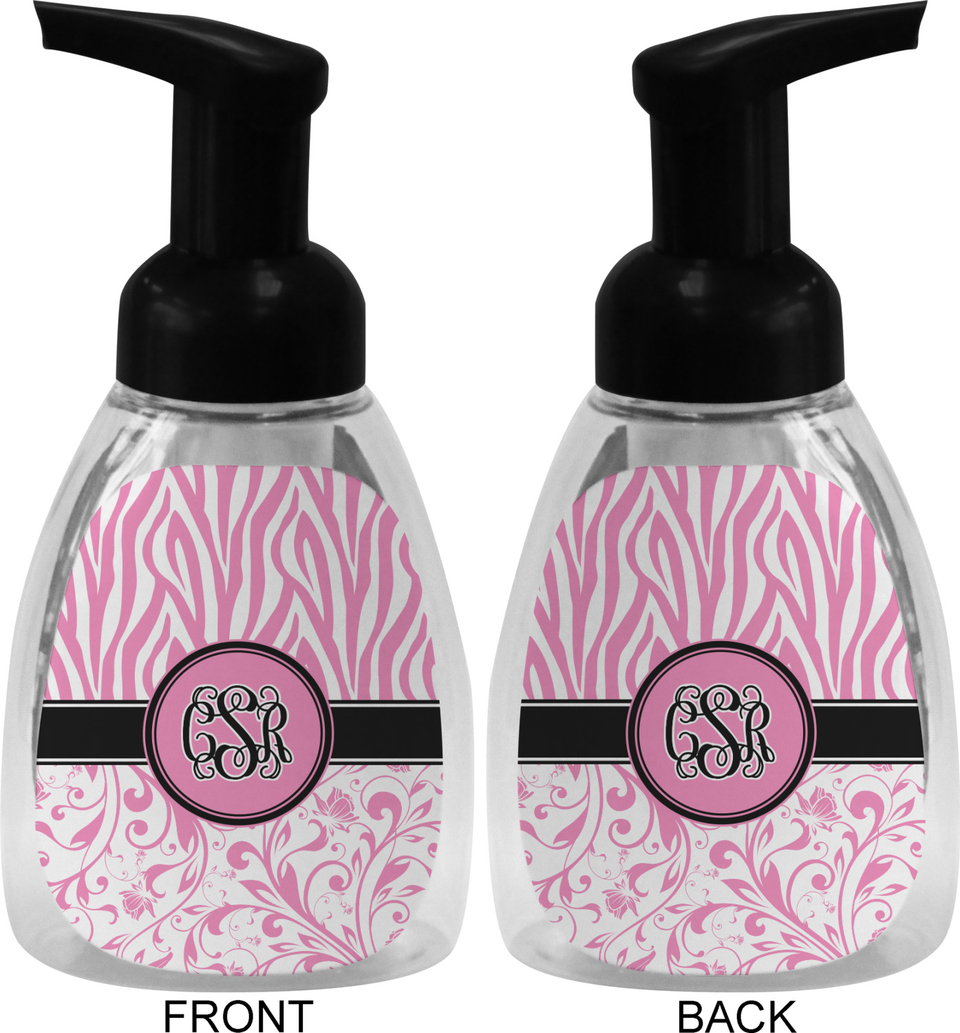 This soap dispenser is made of a robust plastic and has a clear base. The included soap pump is available in black or white color. This dispenser is 6.5 inches tall, 3 inches wide, and 2 inches deep. We display your customized designs on the front and back sides of these foaming hand soap dispensers.