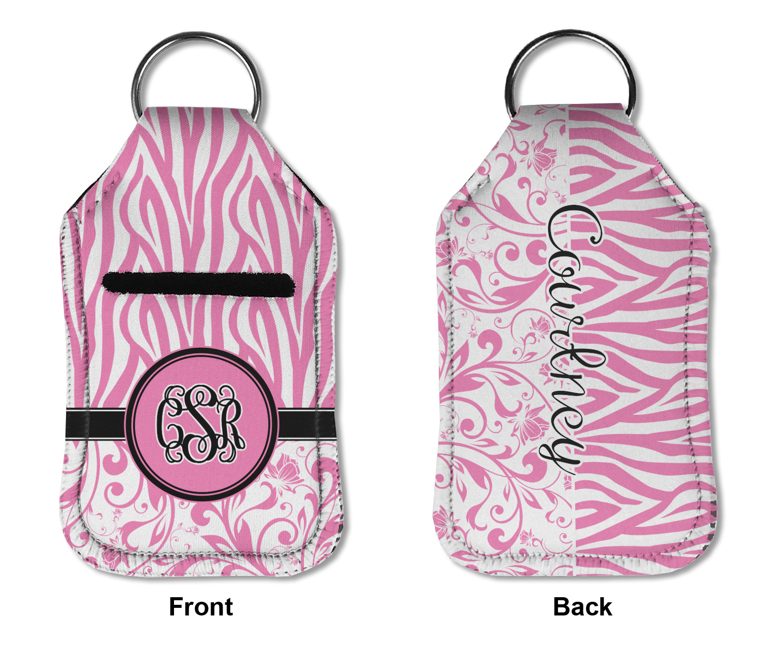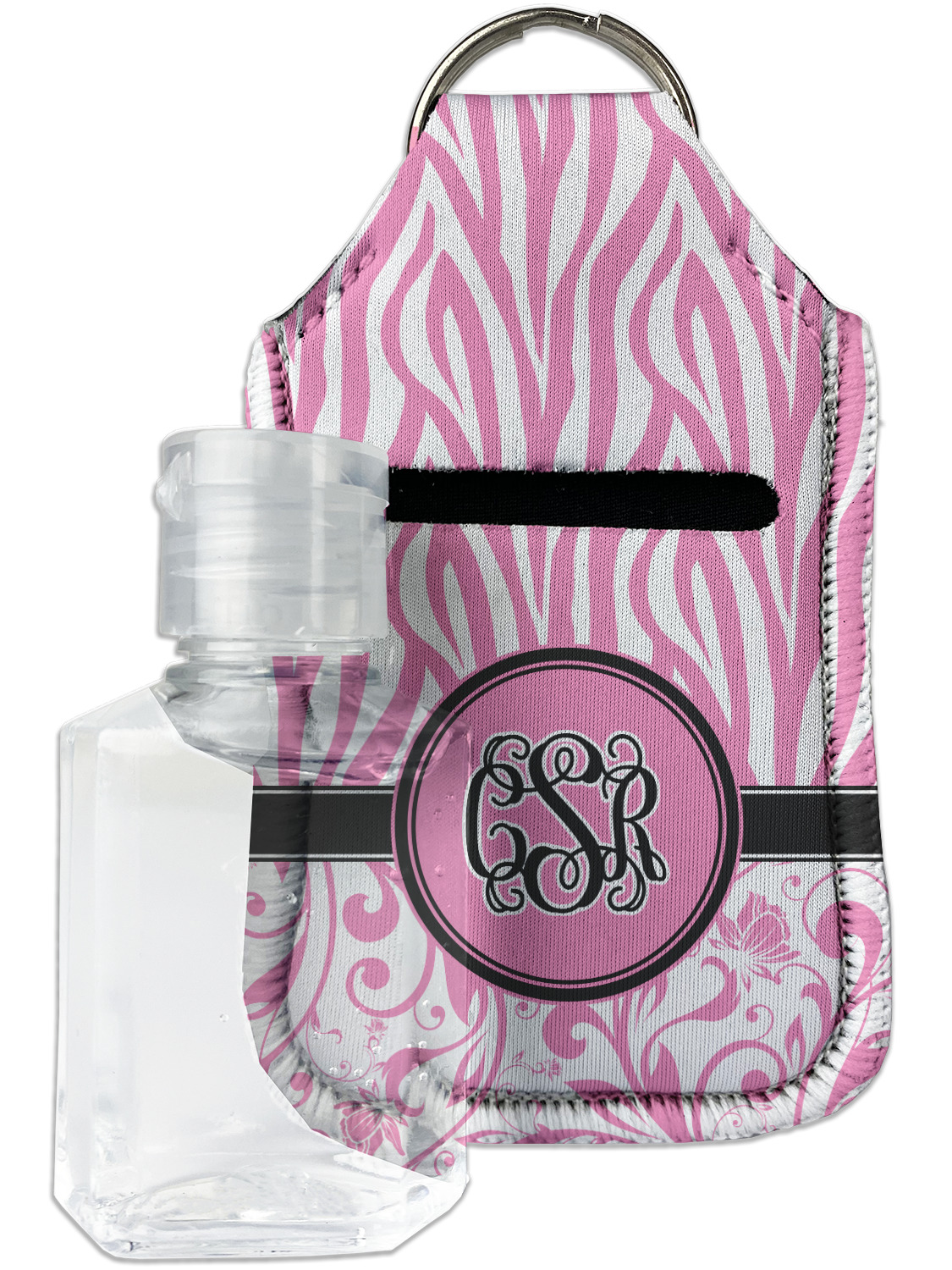 Each hand sanitizer holder comes with its own empty travel-sized, refillable hand sanitizer sure to fit snug in your customized sanitizer case! Our hand sanitizer cases are a durable, yet soft neoprene material sure to last any daily activities or travel agenda. Customize and personalize a hand sanitizer bottle holder with one of our two sizes - small (4.25" x 2.25") or large (5.5" x 2.5"). Each travel sanitizer holder comes with a keyring for attachment on bags, keys, or more!