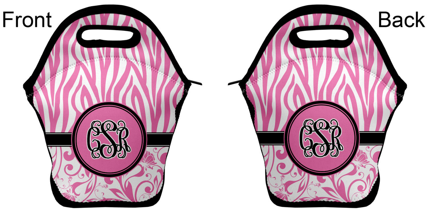 Our personalized lunch bags are made from a strong neoprene, and secure with a zipper closure that lines the top of the bag.The edges of the neoprene are sewn together with a heavy duty stitch, adding to the durability of the bag. The is accompanied by a reinforced handle at its top, for the easy transport of your lunch. We display your personalization across both the front and back of this neoprene lunch bag, while the remaining sides are a sleek black in color. Each bag measures at 13.5 inches tall, and 11.5 inches wide.