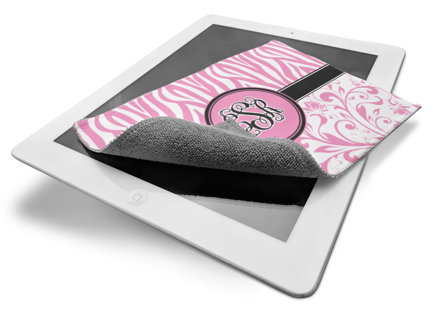 The back of this cleaning cloth is made from a gentle, grey microfiber material, that is masterful at removing smudges, grease, and fingerprints from lenses or electronic screens. The front side of the screen cleaner displays your personalized design in vibrant color. A beautiful stitch lines the edges and secures the microfiber to the polyester top. We provide you with the option of customizing this screen horizontally or vertically, depending on your preferences.