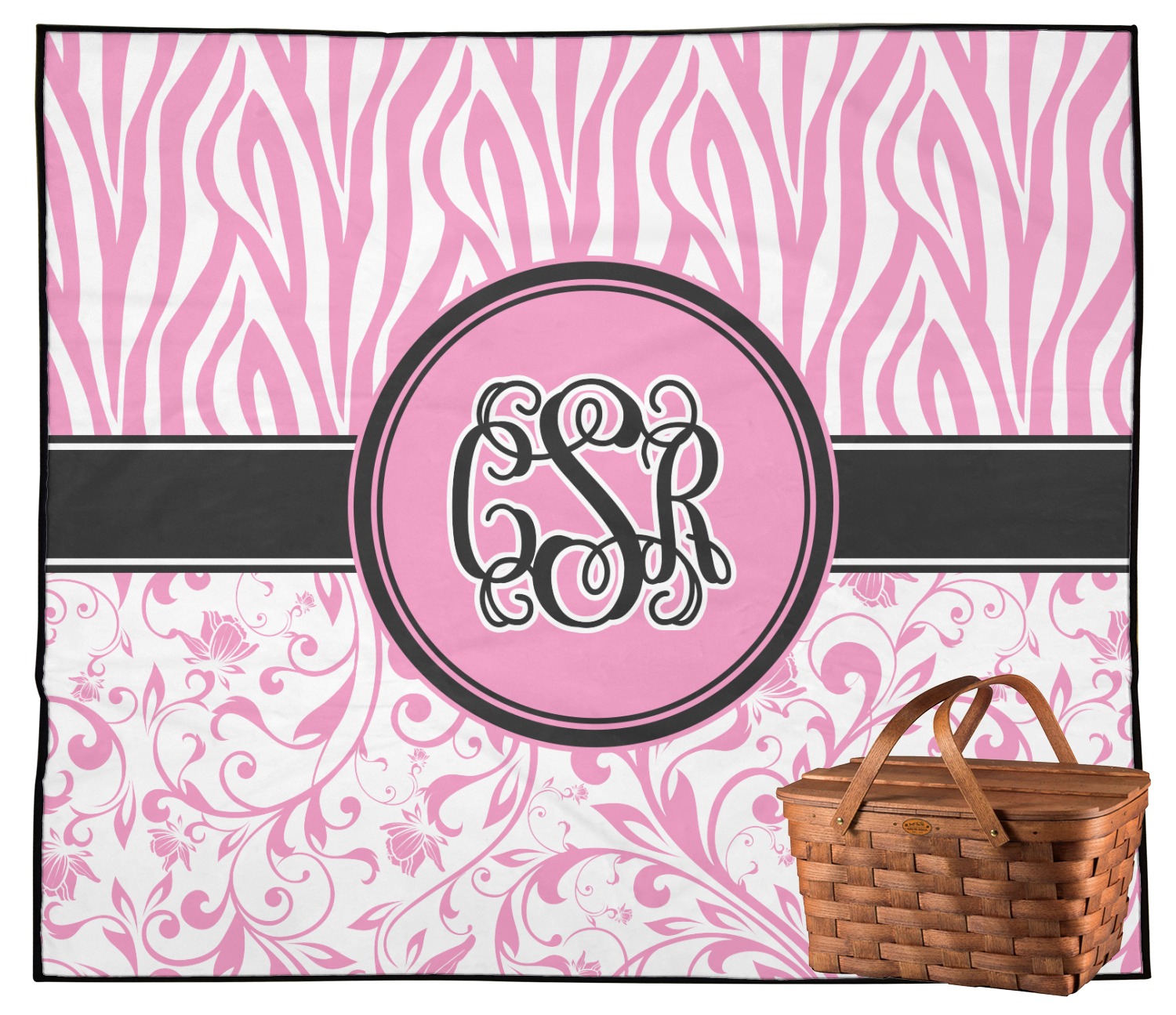 The cute ribbon in the center serves to separate the two beloved patterns and highlight a coordinating circle label that's the perfect place for your monogram.