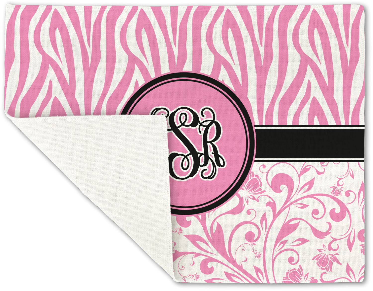 The cute ribbon in the center serves to separate the two beloved patterns and highlight a coordinating circle label that's the perfect place for your monogram.