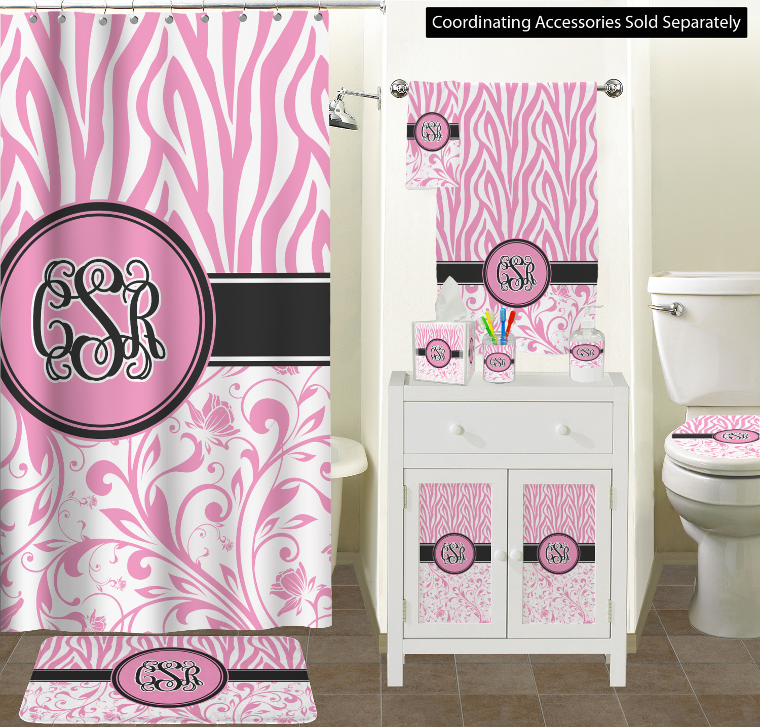 The cute ribbon in the center serves to separate the two beloved patterns and highlight a coordinating circle label that's the perfect place for your monogram.