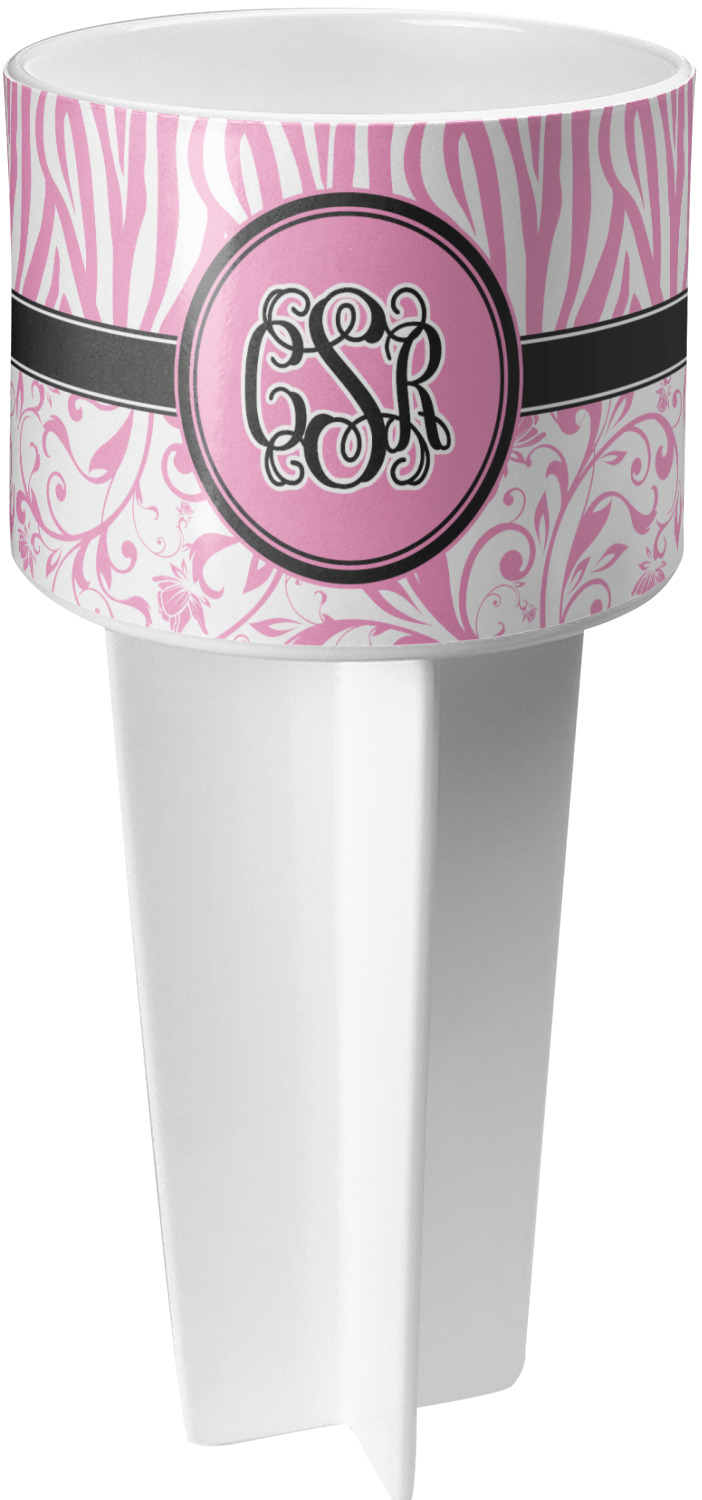 This cup holder has a large stake at its bottom that anchors it to the sand or ground below, while the cup holder rests above the stake. The entire drink holder is made of durable plastic and displays your customization around the cup holder portion. We sell these personalized beach spikers in two different colors: black and white.