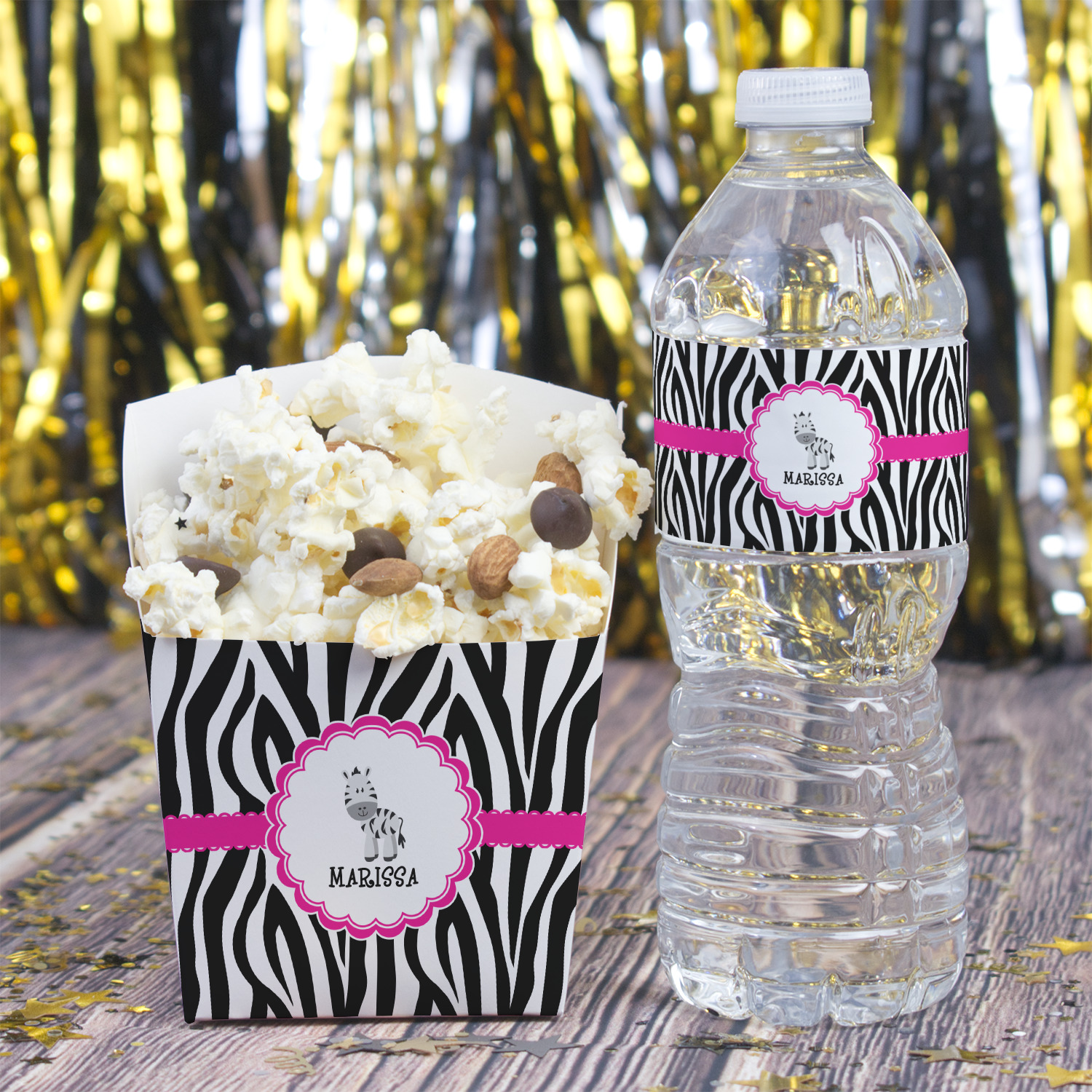 Since it is an open box, it works very well as a party snack cup (instead of plates) for different types of dry snacks and treats such as popcorn, cheezies, pretzels, chips, twizzlers, etc. This box can easily be carried with a drink all in one hand!