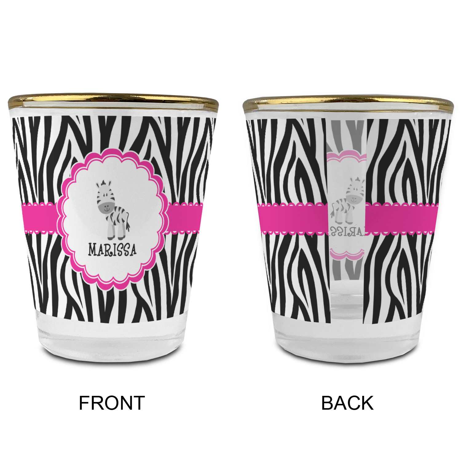 Made with frosted glass, these shot glasses are printed in full color with the design of your choice. They are a standard 1.5oz shot glass and are 2.4" tall. The print is wrapped around the shot glass in a full wrap and boldly displays your customization.