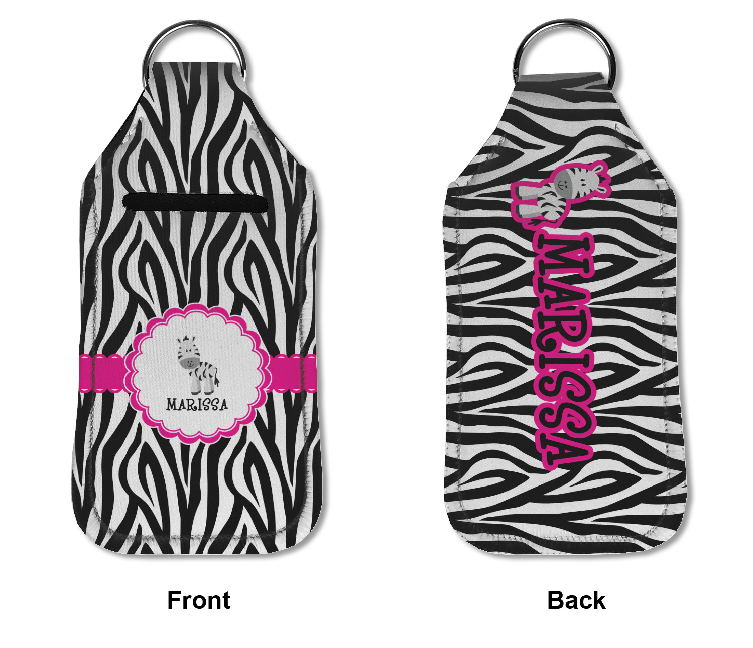 Each hand sanitizer holder comes with its own empty travel-sized, refillable hand sanitizer sure to fit snug in your customized sanitizer case! Our hand sanitizer cases are a durable, yet soft neoprene material sure to last any daily activities or travel agenda. Customize and personalize a hand sanitizer bottle holder with one of our two sizes - small (4.25" x 2.25") or large (5.5" x 2.5"). Each travel sanitizer holder comes with a keyring for attachment on bags, keys, or more!