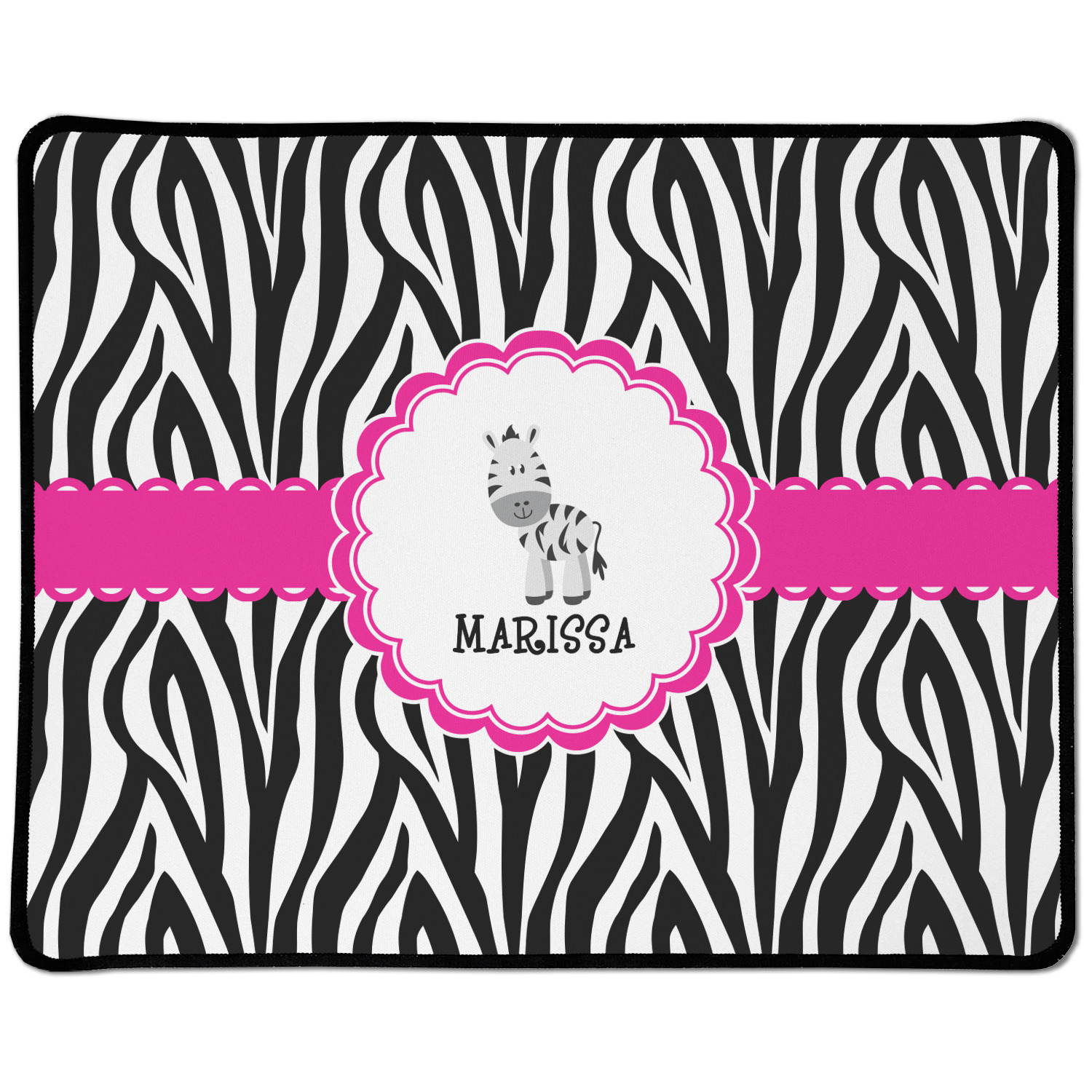 The quintessential animal print is zebra. Stylish and traditional this zebra pattern will withstand the test of time. A touch of whimsy is added to this design with a ruffled wide hot pink band.
