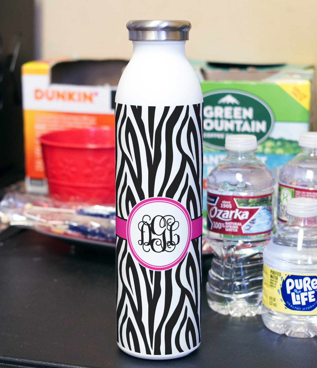 Design your bottle and we will print your design with a UV stable ink so it will not fade over time. After printing the design we apply a clear coat over the print to ensure its durability will stand up to rough every day use.