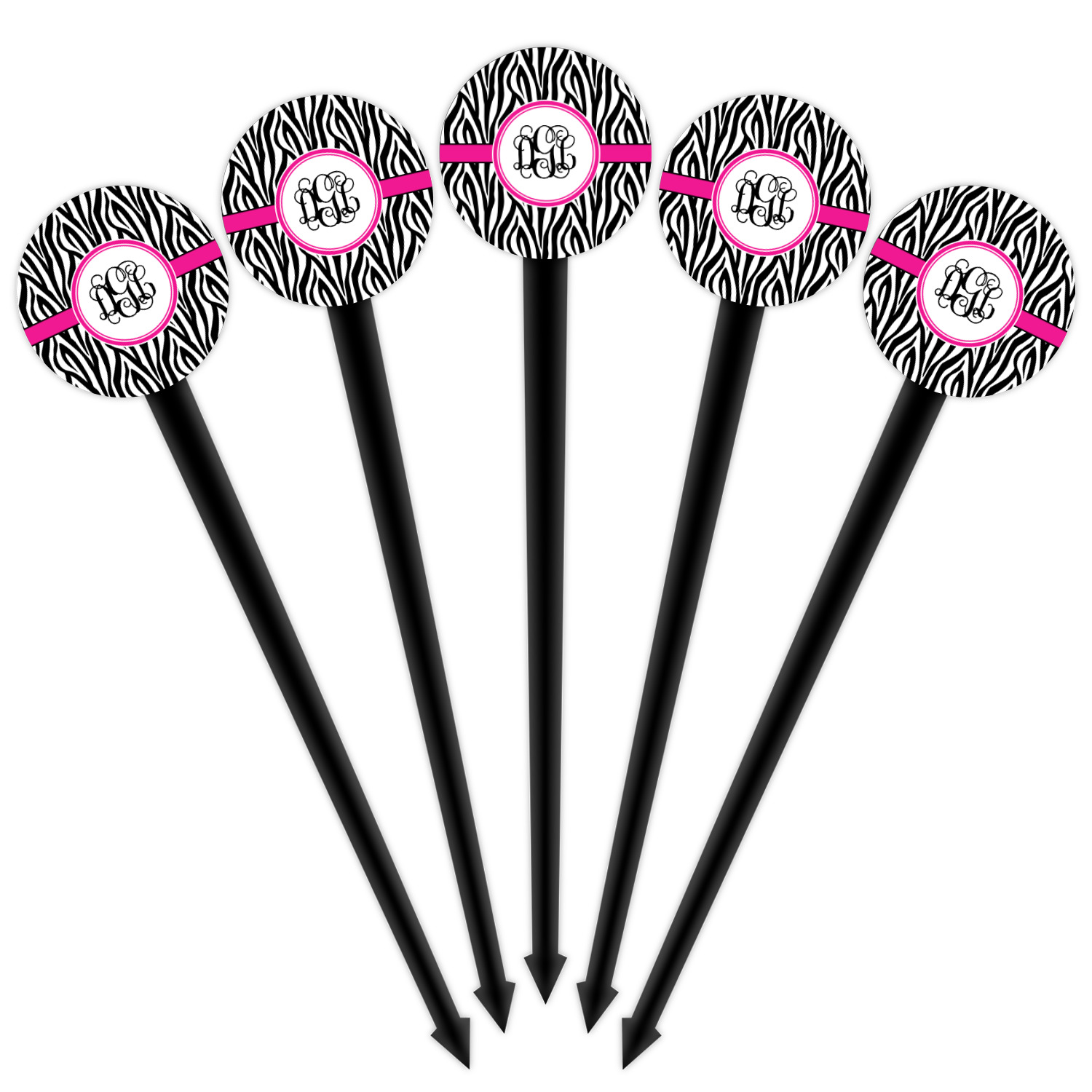 Our plastic cocktail picks have a round disc on top that is printed in full color with your event theme, colors, your logo, your photo, names, initials, monograms etc.