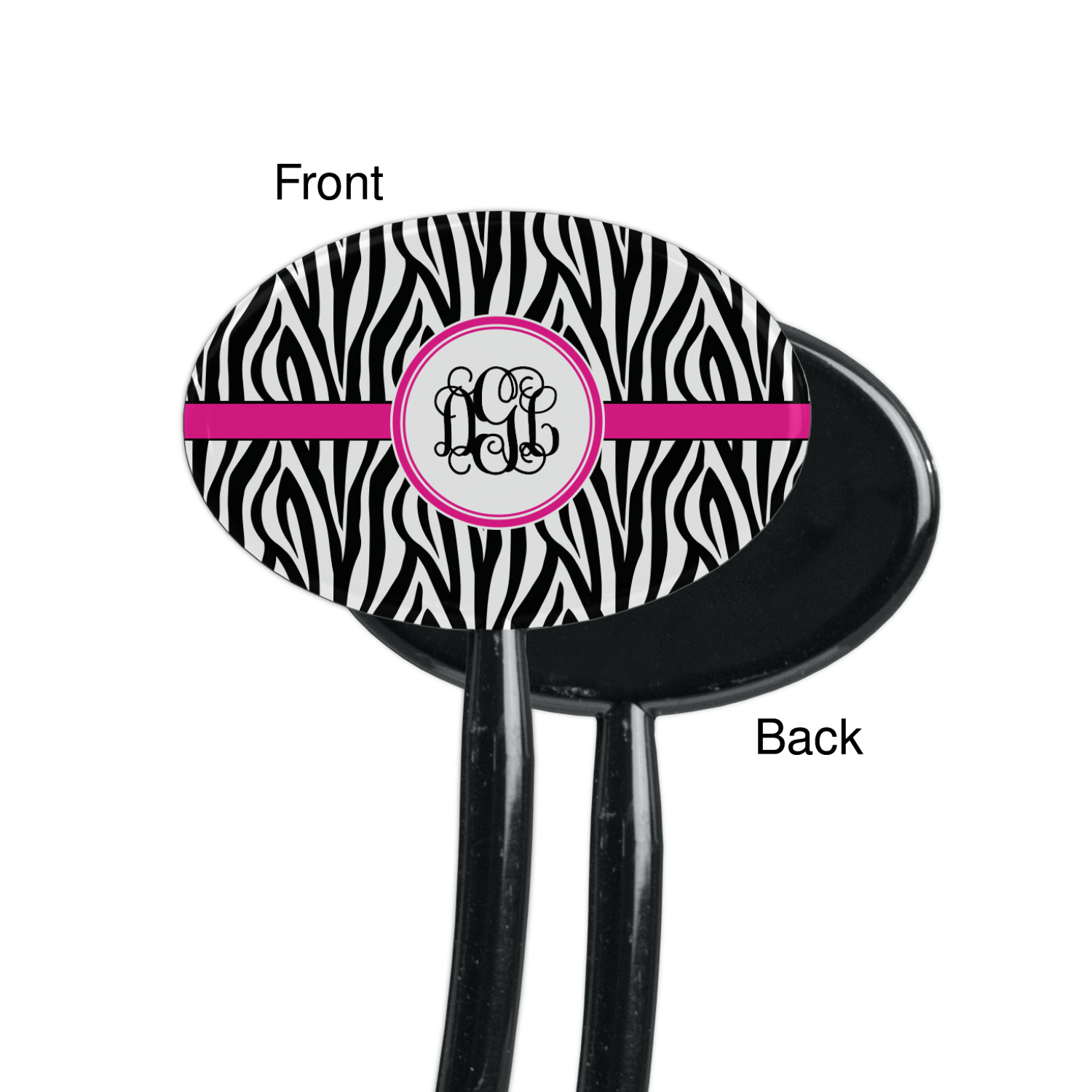 Modernized with a wide hot pink band that is trimmed in black. This band highlights a coordinating label that is perfect for personalization of your choice.