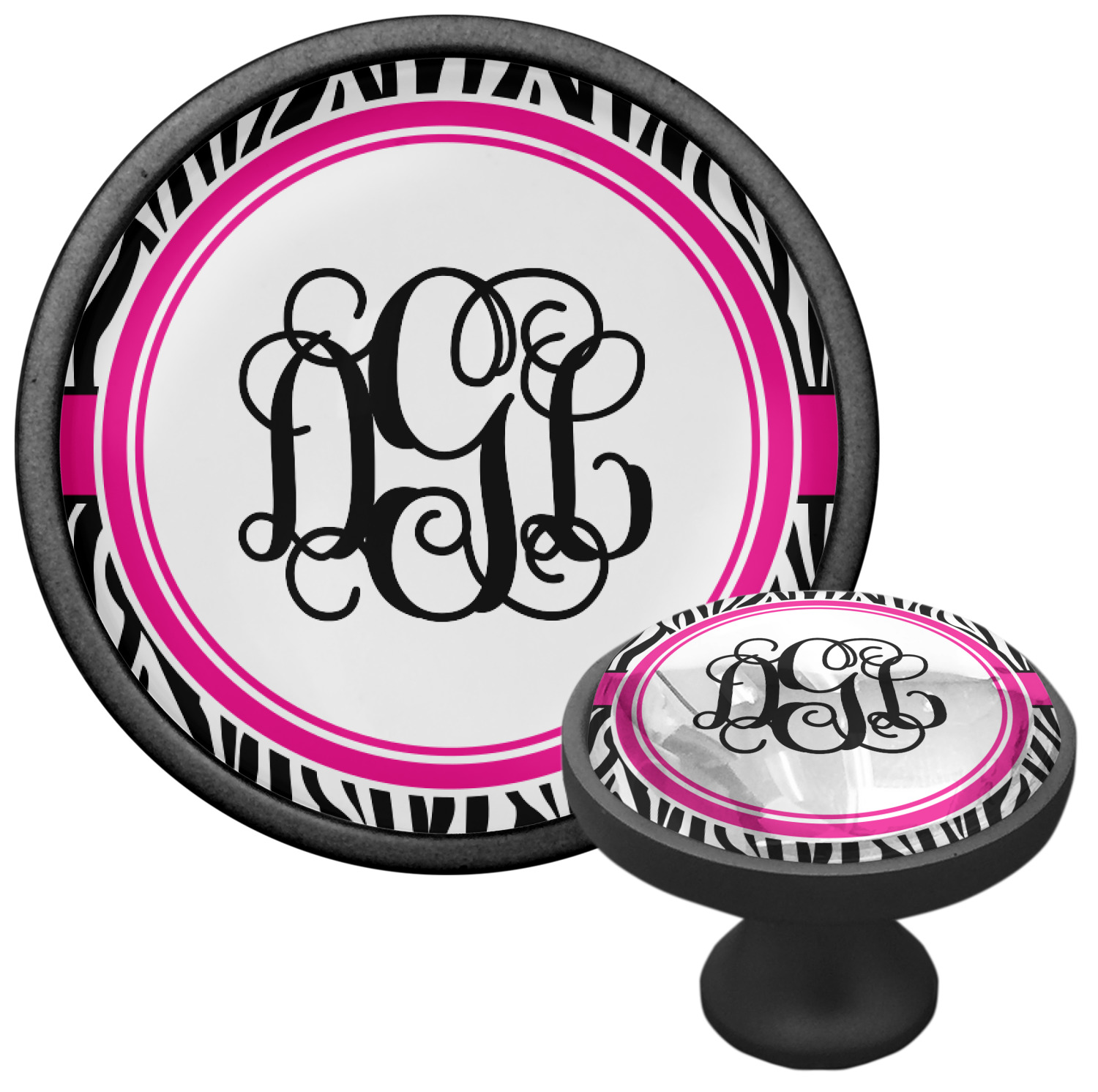 We sell these cabinet pulls in two different colors to better match your room's color scheme. We offer an oil-rubbed bronze base that is black in color, and a satin nickel option, which has a silver color. Your design is displayed across a high gloss vinyl insert that is placed on top of these cabinet handles. We then place a 1 inch thick glass cabochon atop the design, which seals the cabinet knob and makes the colors of your customization stand out. These custom cabinet knobs are approximately 1.3 inches in diameter. Your purchase includes a 1 inch screw that can be used to mount the knob to any cabinet in your home.