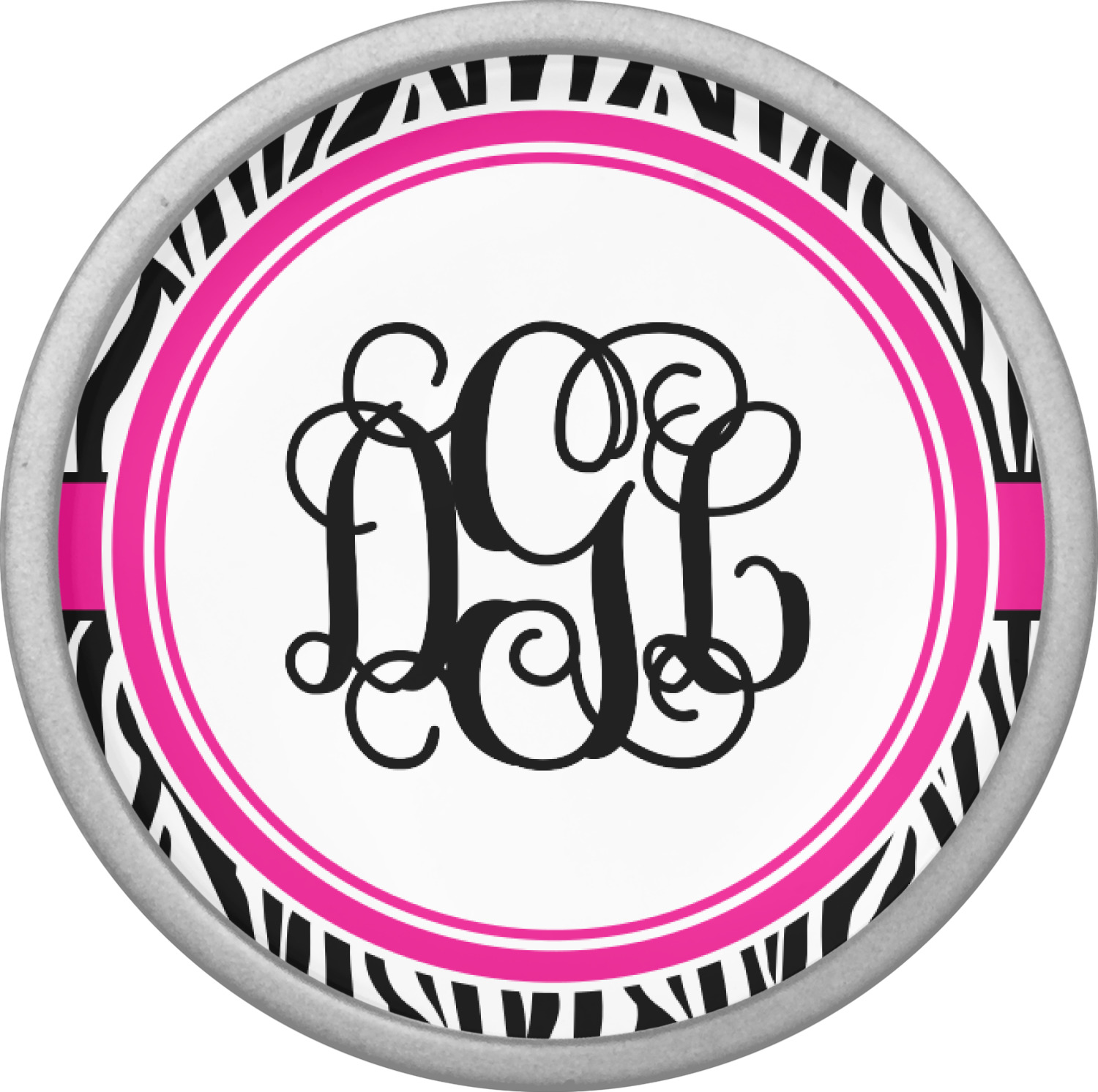 Modernized with a wide hot pink band that is trimmed in black. This band highlights a coordinating label that is perfect for personalization of your choice.